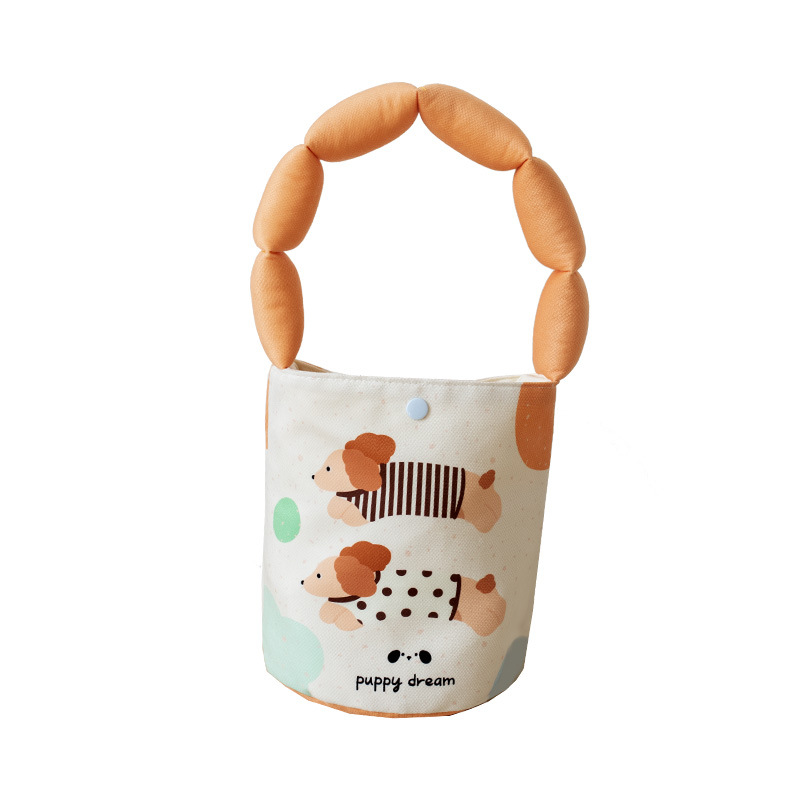 Portable Bucket Bag Women’s Armpit Bag Cartoon Cute Dachshund Dog Hand Carry Filled Cotton Souvenir Bag Plus