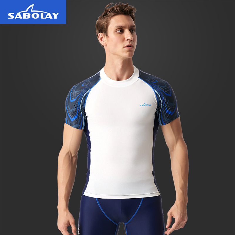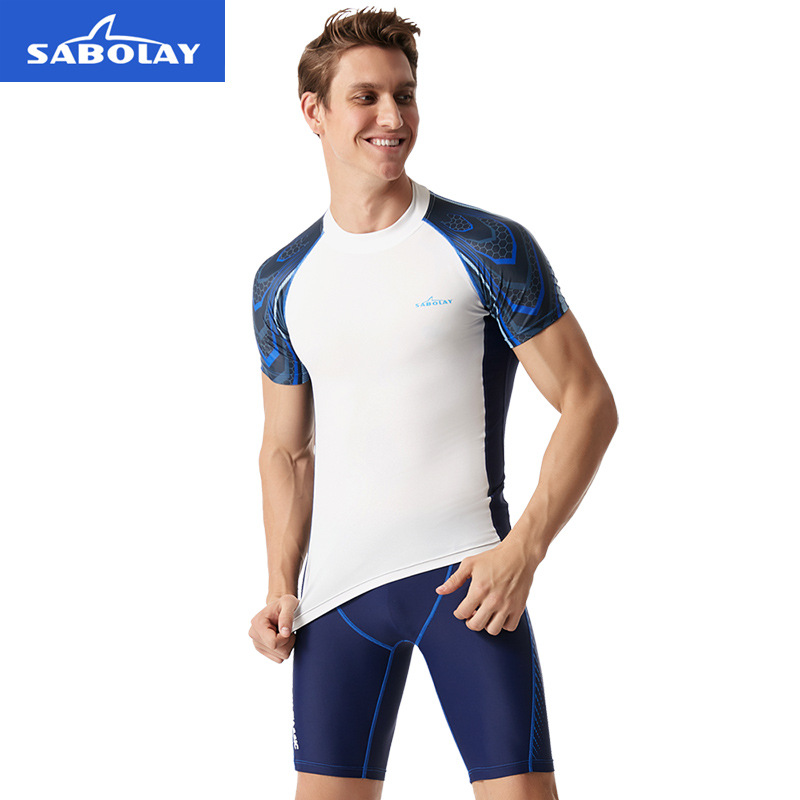 SABOLAYMen's Plus Size Swimsuit Short-sleeved Split Wetsuit Tight Quick-drying Surfing Suit Swimsuit