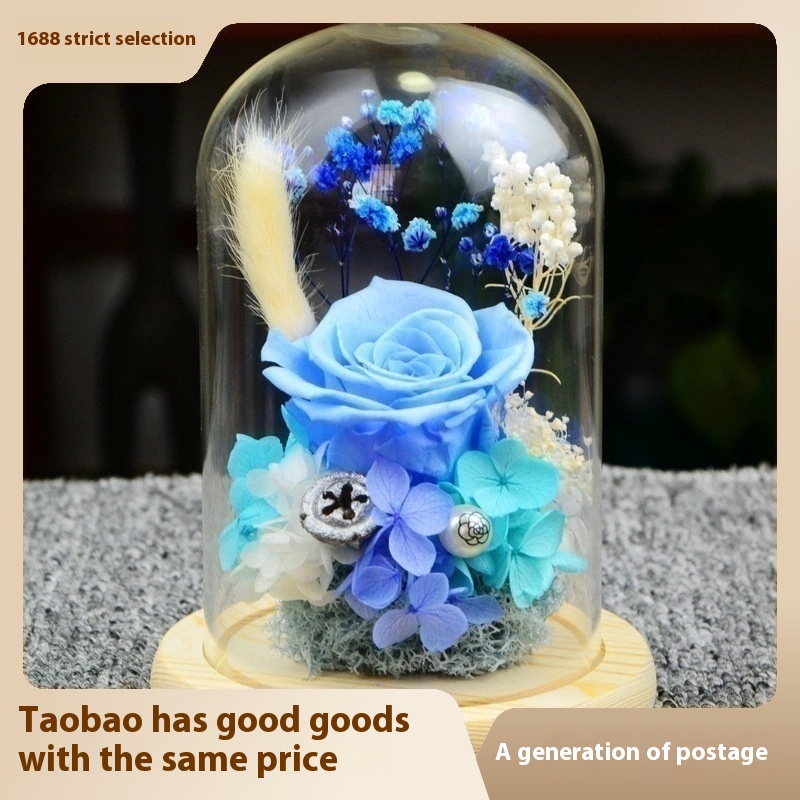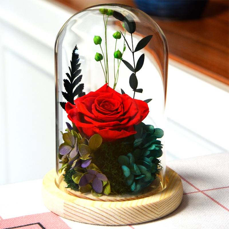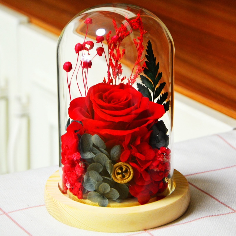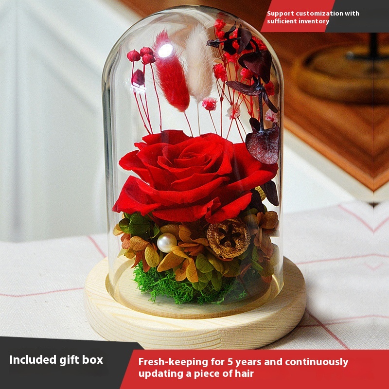 Chinese Valentine's Day Preserved Flower Glass Cover Finished Rose Preserved Flowers Dried Flower Gift Box Christmas Creative Gift