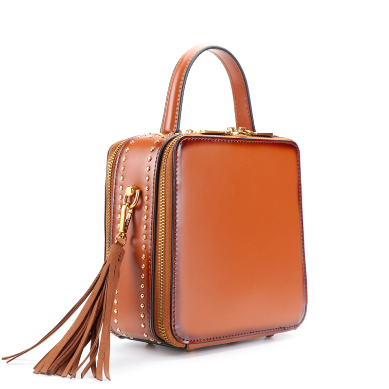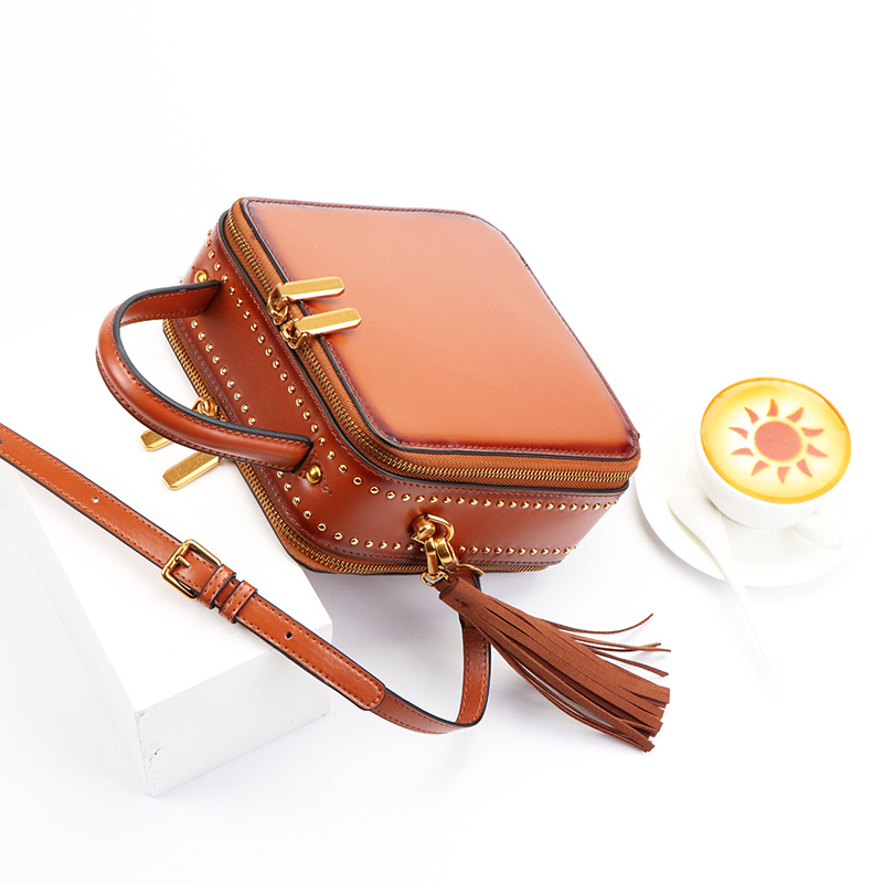 Bags For Women Retro Rivet Small Square Bag Cowhide Tassel Shoulder Bag Fashion Handbag Crossbody Bag For Women