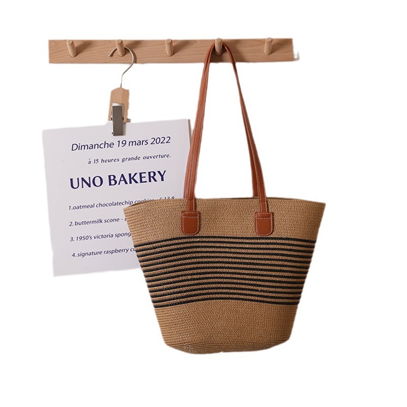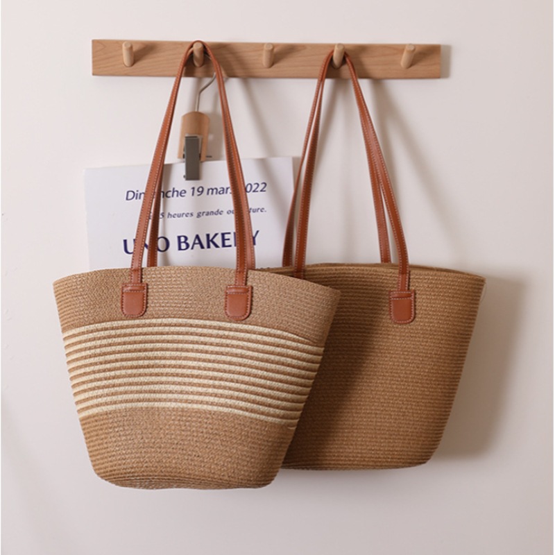 Simple Single Shoulder Straw Bag Woven Bag Summer Large Capacity Casual Versatile Women's Seaside Beach Rattan Woven Bag