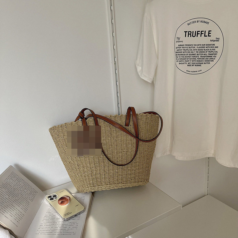 One Piece Dropshipping Large Capacity Single Shoulder Straw Bag Style Charlotte Straw Bag Woven Bag Vacation Style Beach Bag Women's Bag