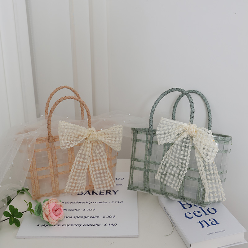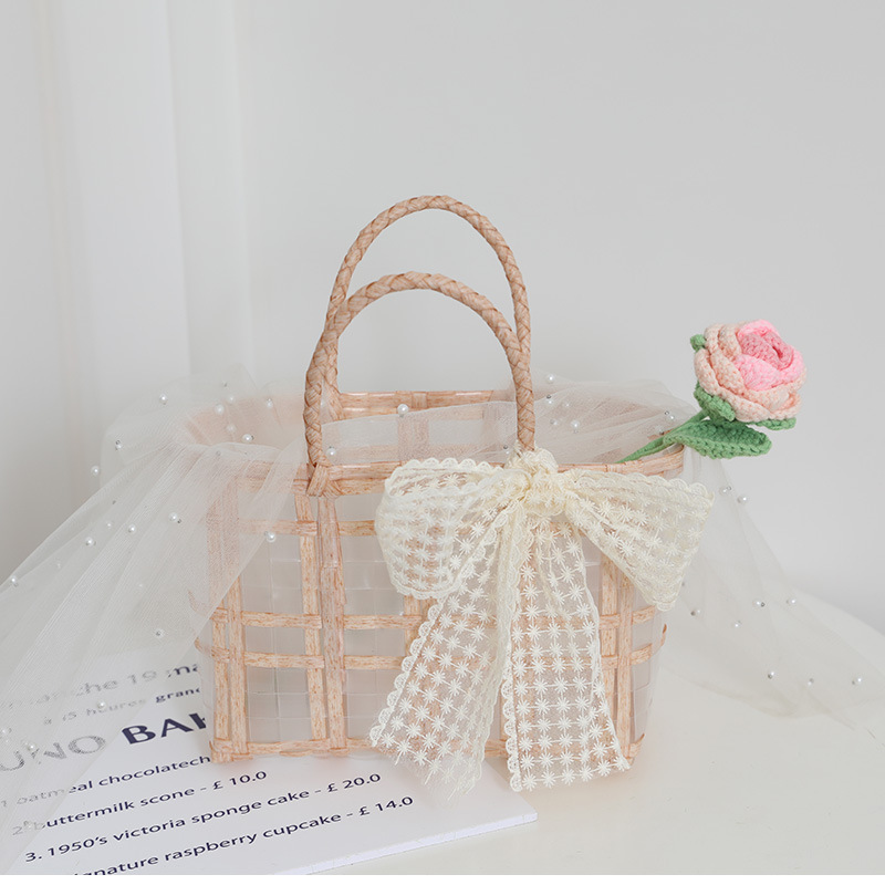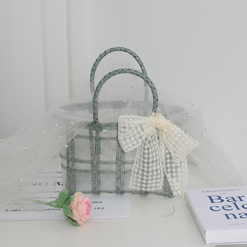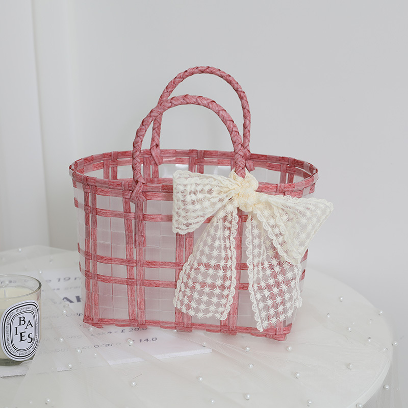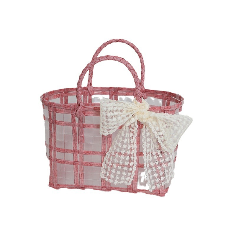 Bridesmaid And Souvenir Handbag,Pink Fairy Transparent Straw Bag,Wedding Sister Group Woven Bag,Handbag