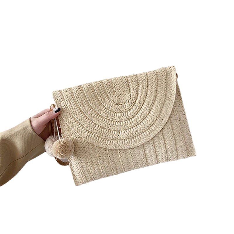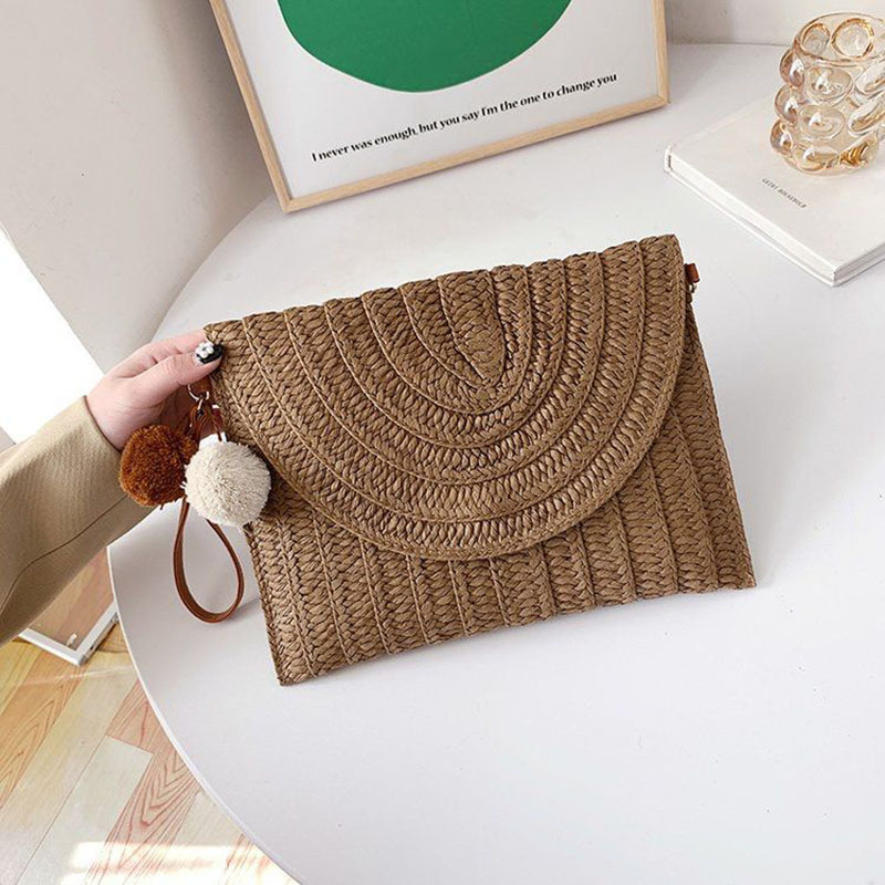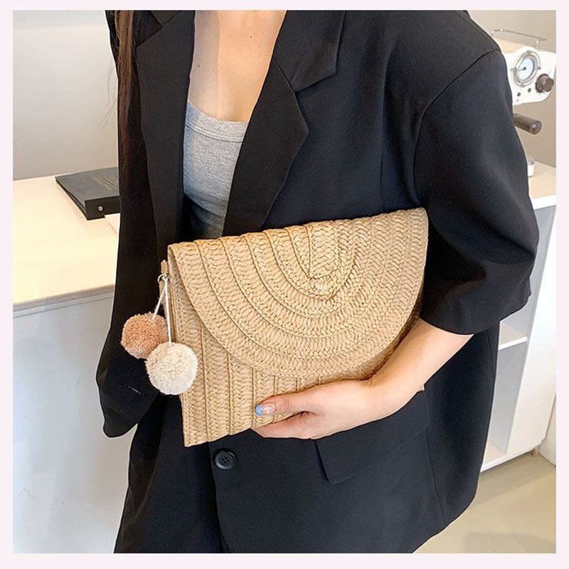Cute Ball Crossbody Straw Bag Casual Bag Cover Clutch Women's Bag Versatile Woven Bag Vacation Beach Bag
