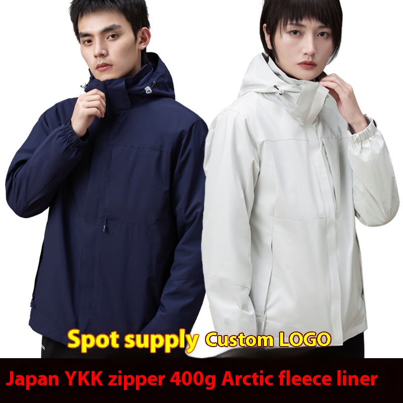 Outdoor Jacket, Men's And Women's Three-in-one Two-piece Set, Thickened Removable Windproof And Waterproof Mountaineering Clothing With Printed