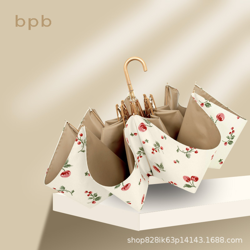Zhisan Double-layer Umbrella Folding Umbrella High-grade Black Plastic Sunscreen Umbrella Sunny And Rainy Umbrella Dual-purpose Five-fold Sun Umbrella