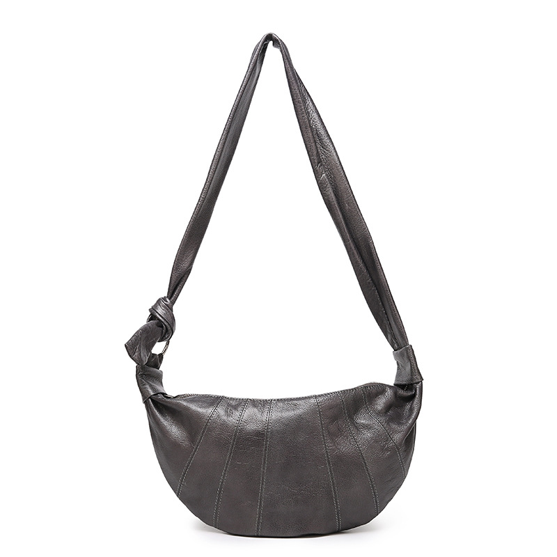 Genuine Leather Women's Bag Cross-body Croissant Bag Japanese Women's Bag Versatile Soft Leather Lazy Style Casual Small Bag