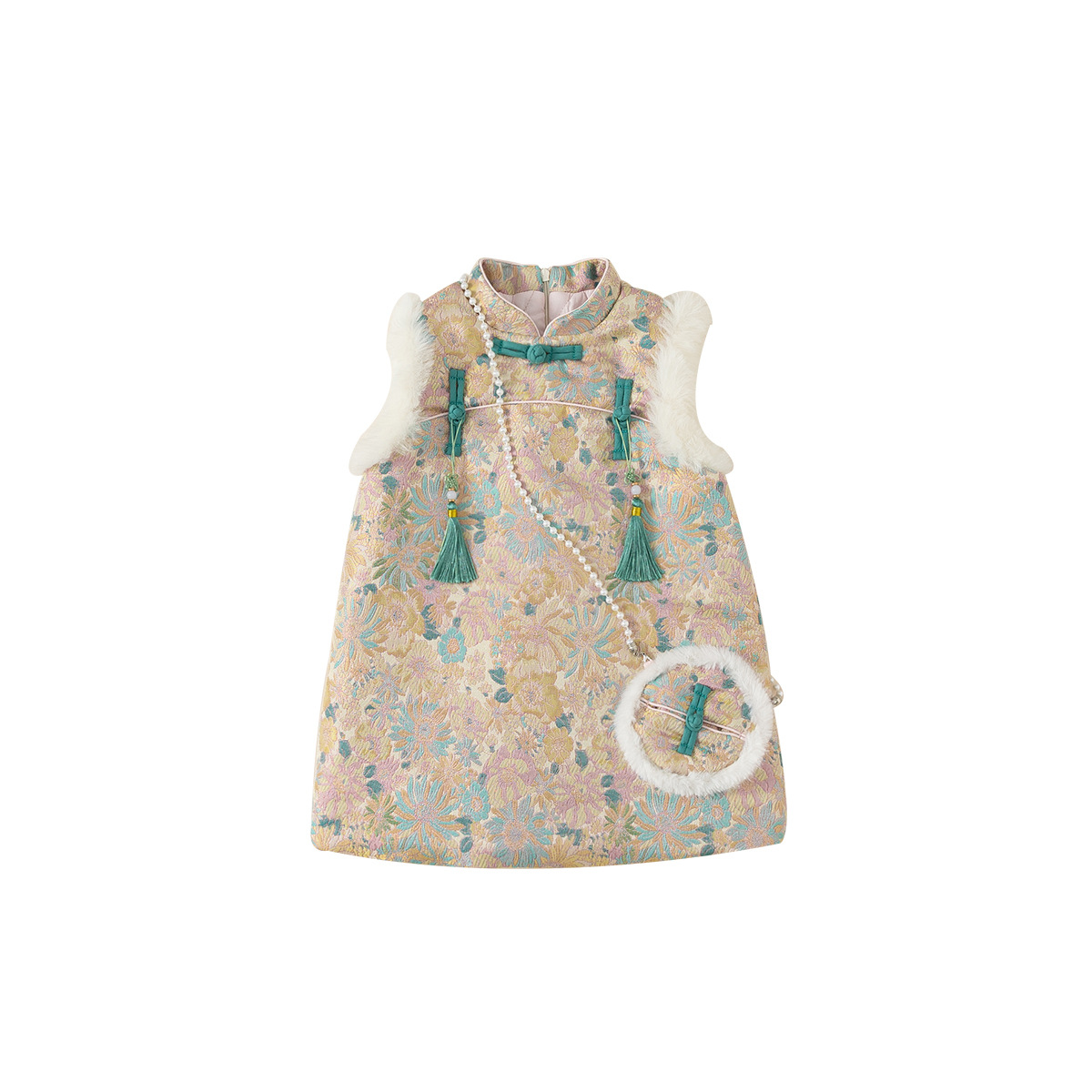 Babycity Children's Buttoned Raw Edge Design Dress Chinese Style Girl Embroidered Cheongsam With Bag DQ23244