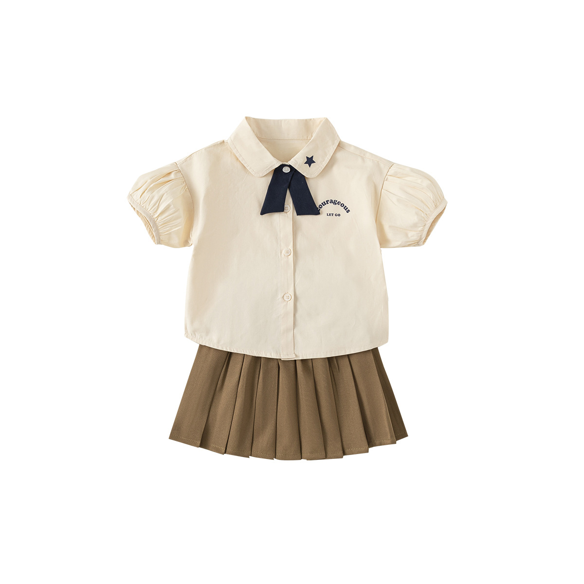 Bobo Children's College Style Suit Summer Girls'Shirt Pleated Skirt Class Uniform Two-piece Set XT24027