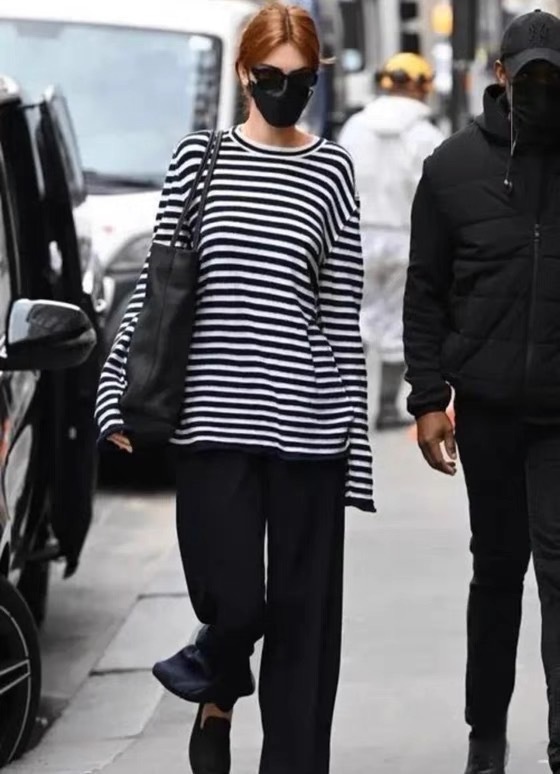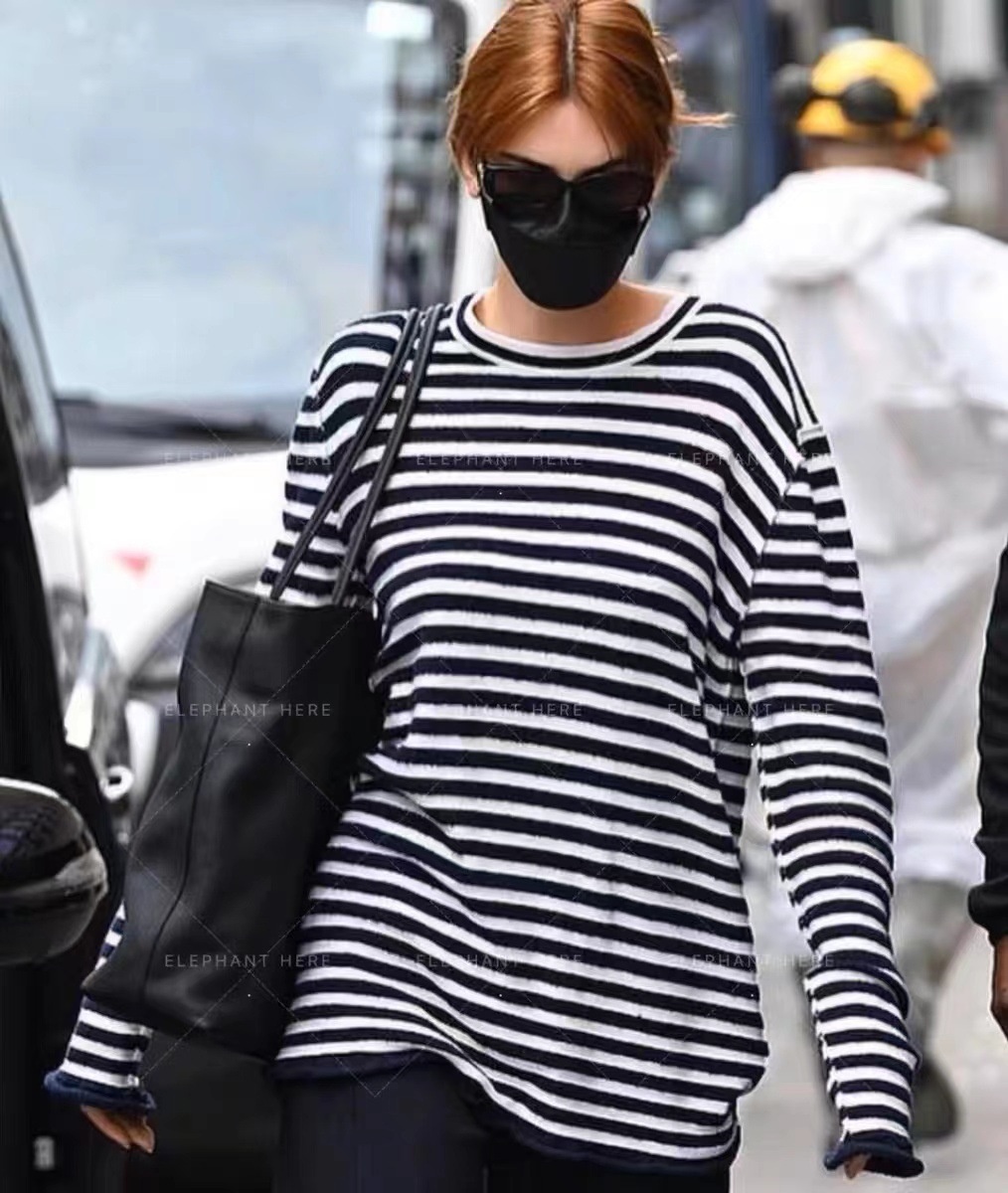 Autumn And Winter Kendou Blue And White Striped Sweater Long-sleeved T Round Neck Sweater Women's Top
