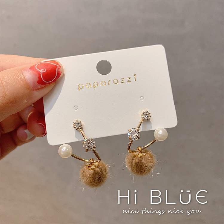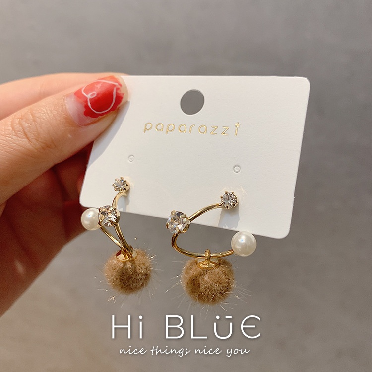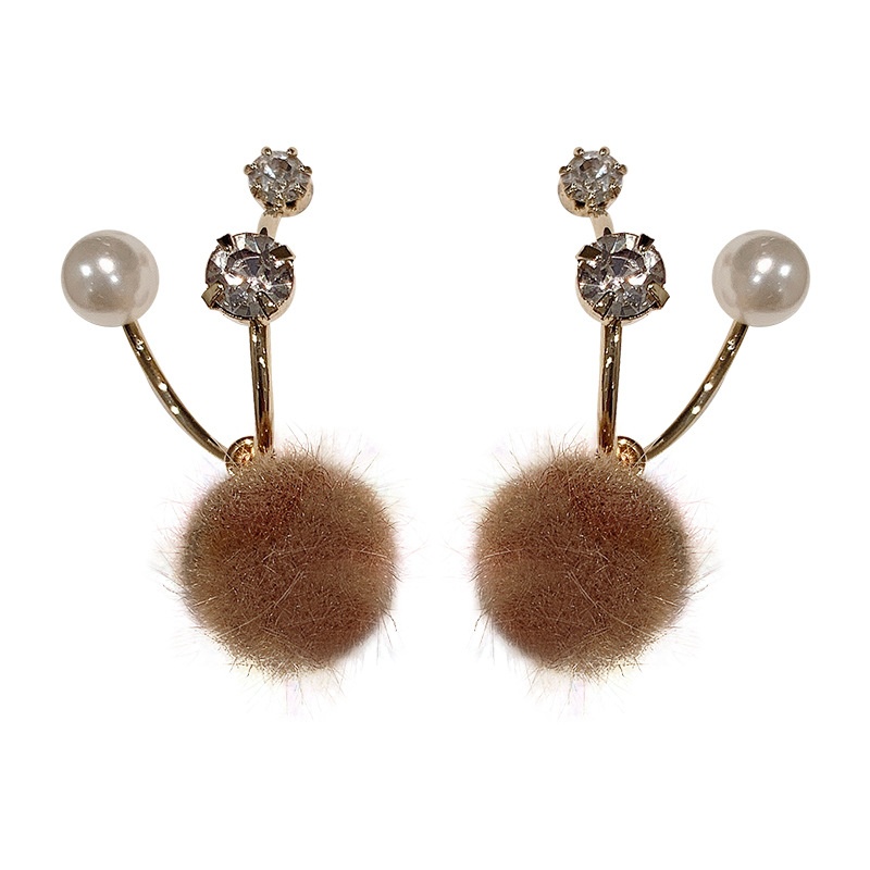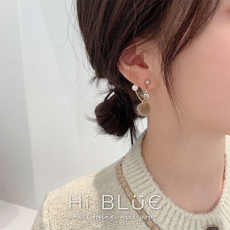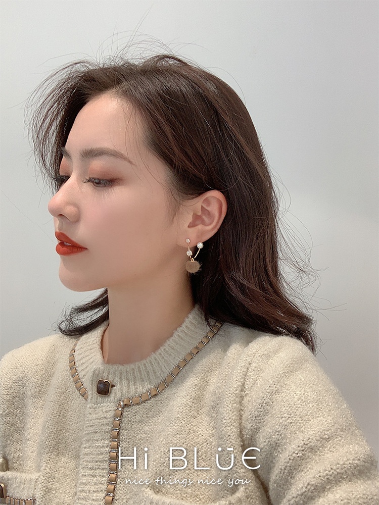 S925 Needle Korean Plush Ball Earrings Suitable For Autumn And Winter Earrings Versatile Temperament Pearl Earrings Female
