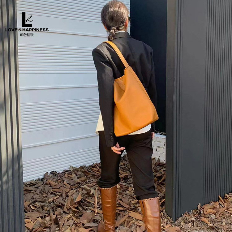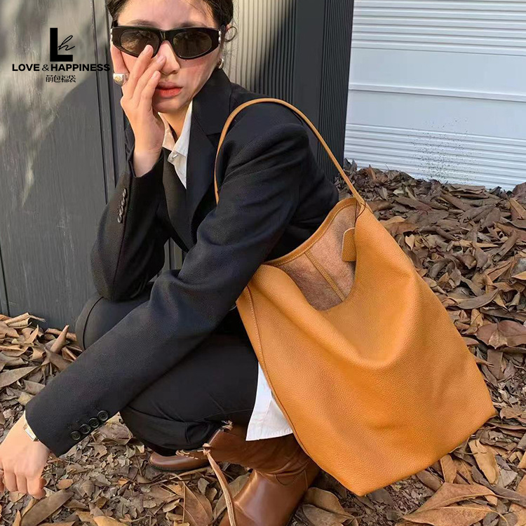 Genuine Leather Large-capacity Commuter Tote Bag ROWLarge Portable Pebbled Shoulder Handbag Armpit Casual Shopping