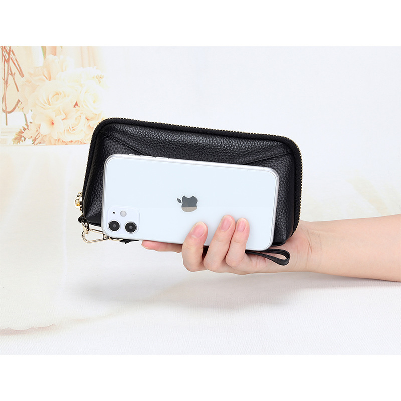 Women's Genuine Leather Clutch Bag Mobile Phone Bag First Layer Cowhide Women's Clutch Bag Multi-functional Versatile Wrist Bag