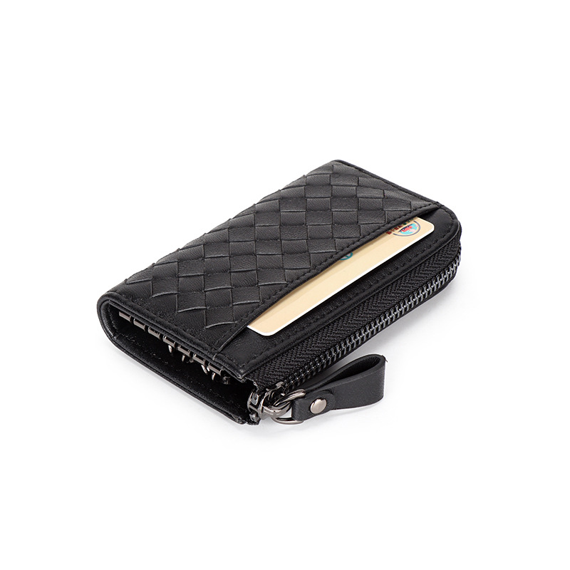 Sheepskin Woven Key Bagide And Outside Women's Soft Leather Car Keychain Card Holder Set All-in-one Car Remote Control Bag