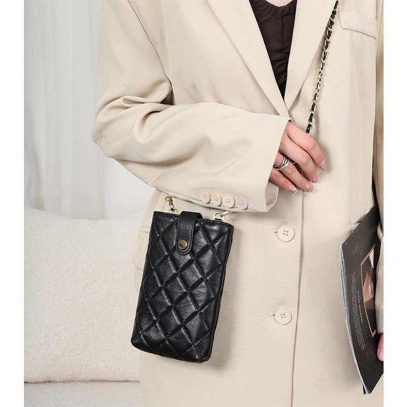Mobile Phone Bag Women's Genuine Leather Crossbody Bag Shoulder Bag Mini Sheepskin Chain Small Bag Fashion Mobile Phone Bag