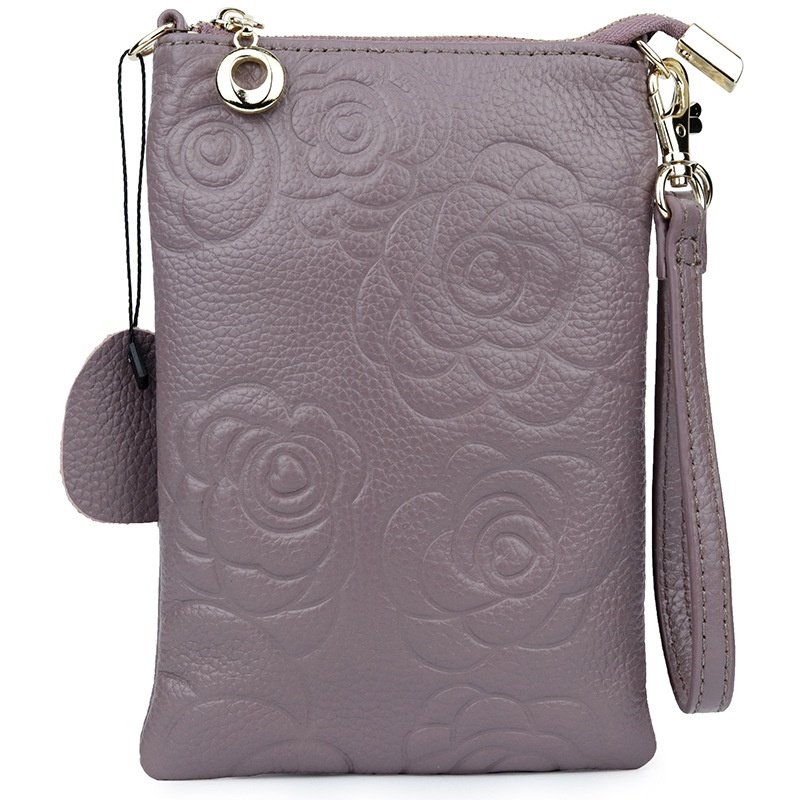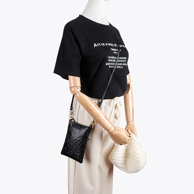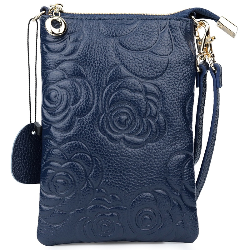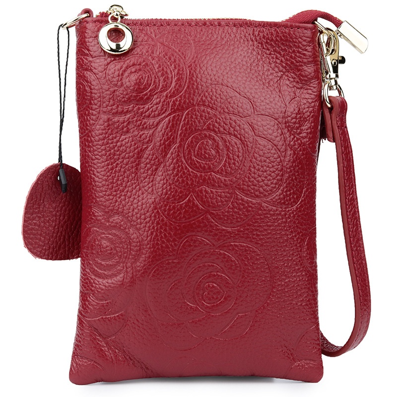 First Layer Cowhide Rose Multifunctional Women's Mobile Phone Bag Genuine Leather Coin Purse Women's Crossbody Shoulder Bag