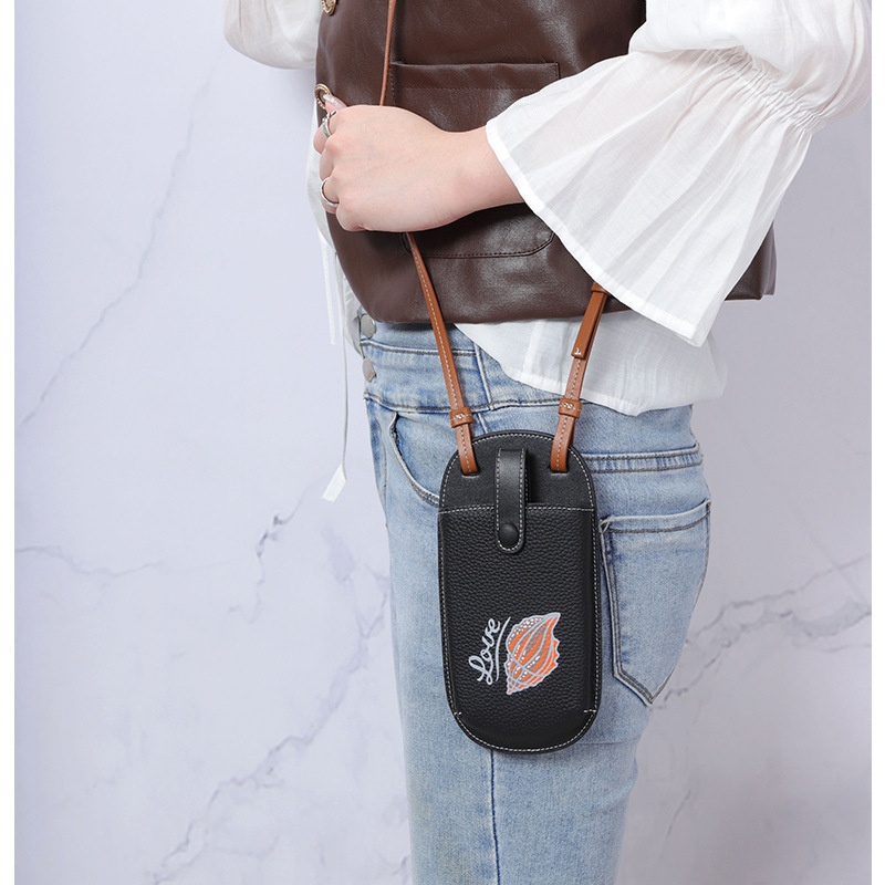First Layer Cowhide Women's Mobile Phone Bag Mini Vertical Mobile Phone Bag Fashionable Printed Women's Small Bag Crossbody Bag