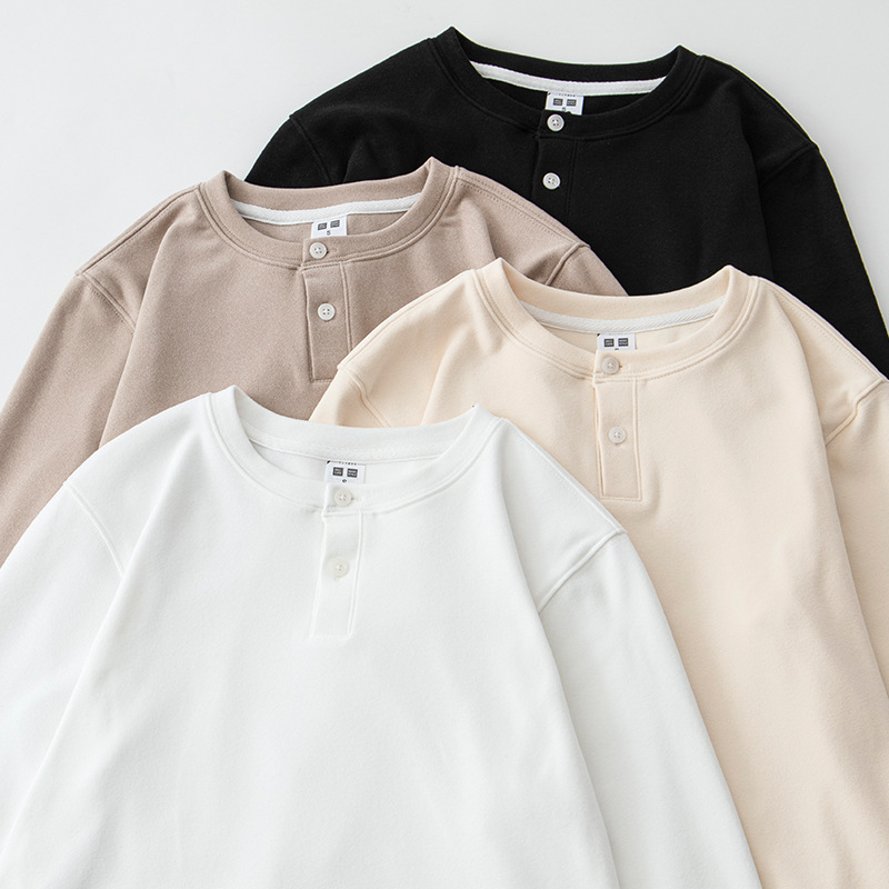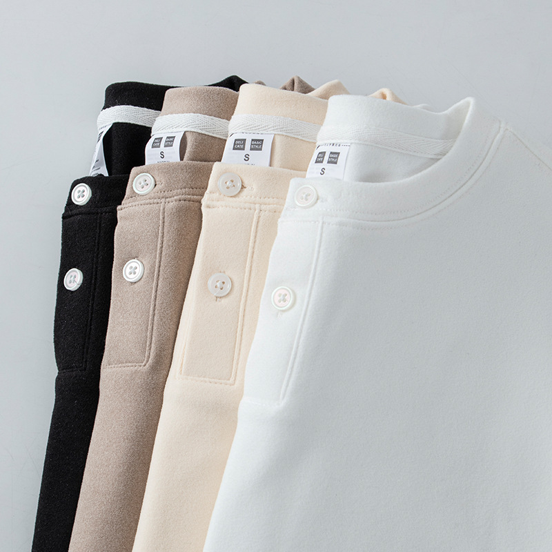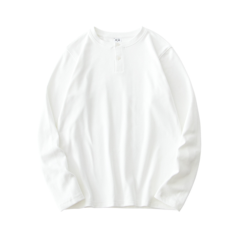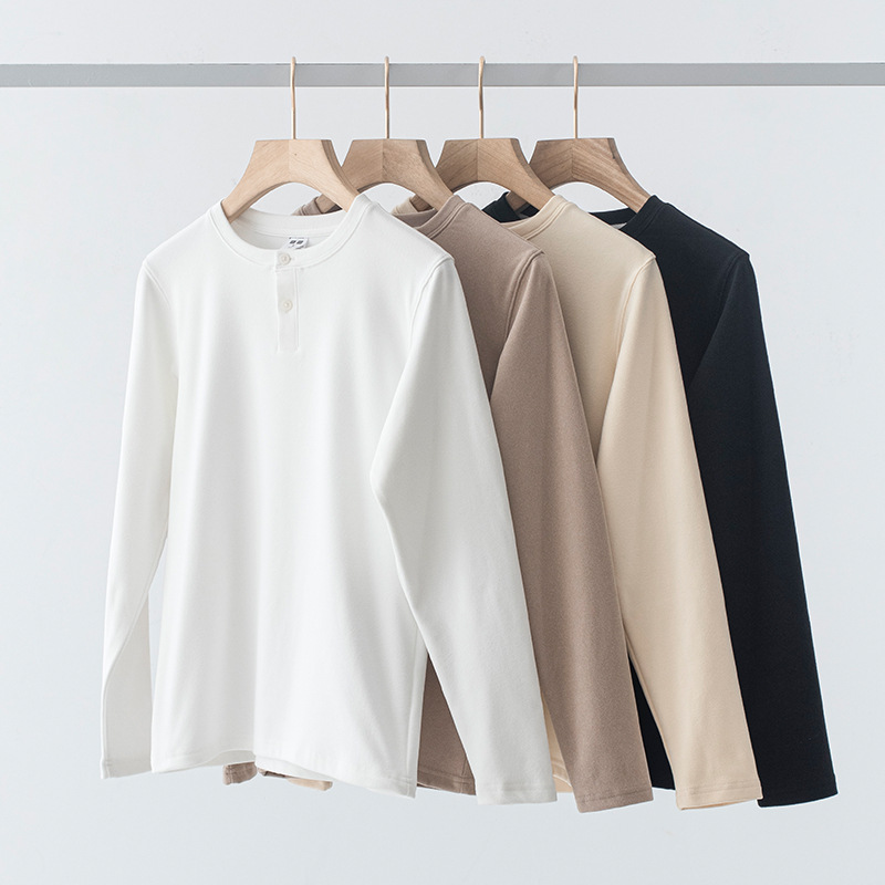 High-end280g Double-sided Velvet Round Neck Open Button Long-sleeved T-shirt Men's British Classic Henry Shirt Thermal Underwear Bottoming Shirt