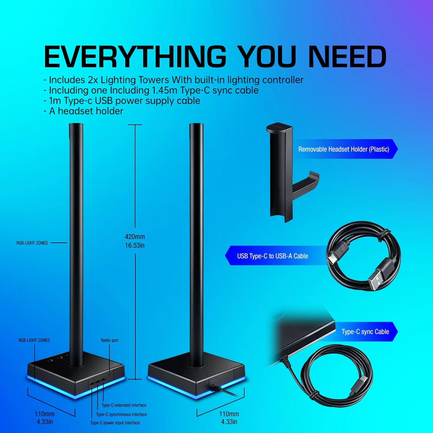 RGBSound Pickup Atmosphere Lamp Multi-rhythm Mode Computer Desktop Game Headphone Holder Can Be Controlled By APP