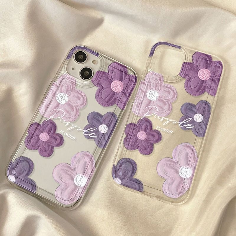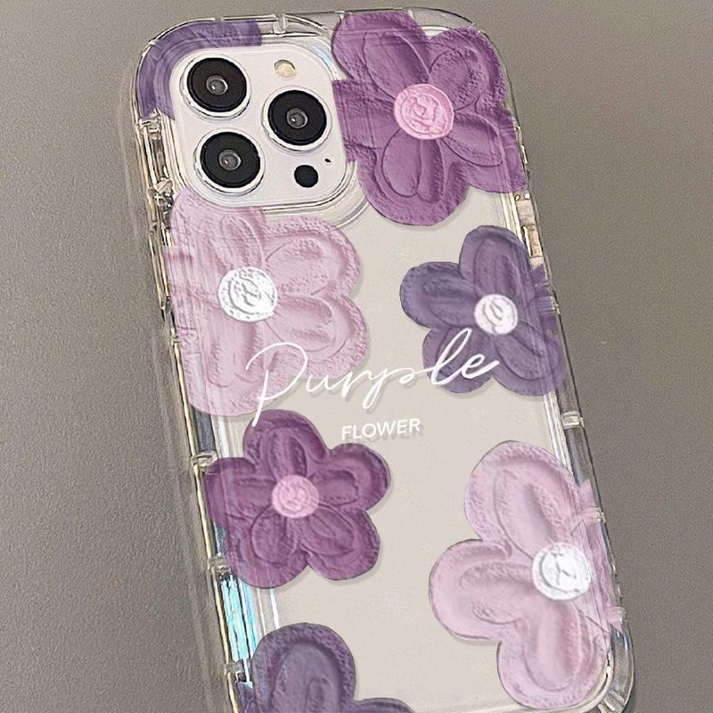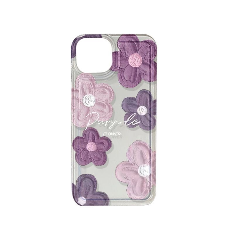 Purple Oil Painting Flowers Suitable For IPhone15promax Mobile Phone Case14 Pro Apple12 Fine Hole11 Soft Case13
