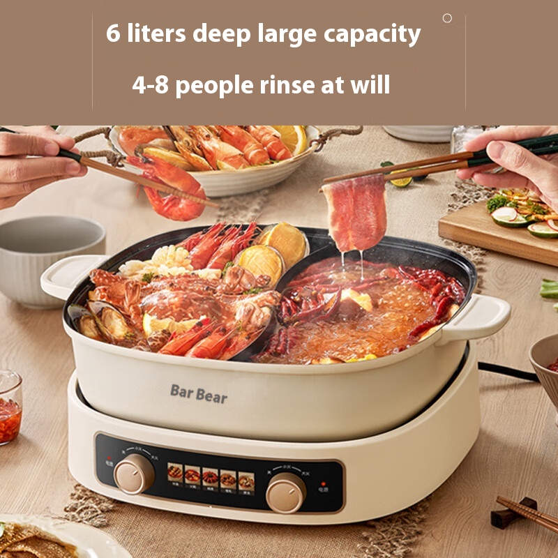 Little Bear Yuanyang Pot Electric Hot Pot DHG-D60 J1 Electric Heating Split5 Minutes And30 Seconds Quick Boiling Cooking Shabu-shabu Pot