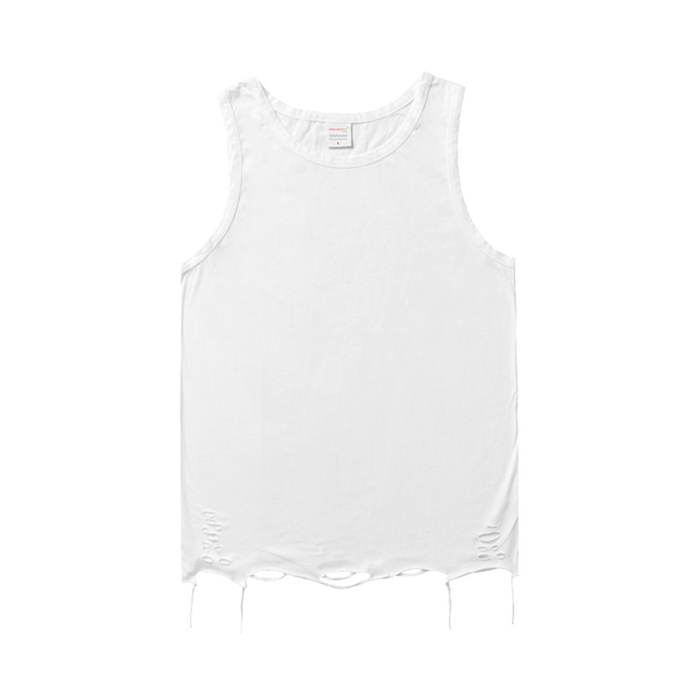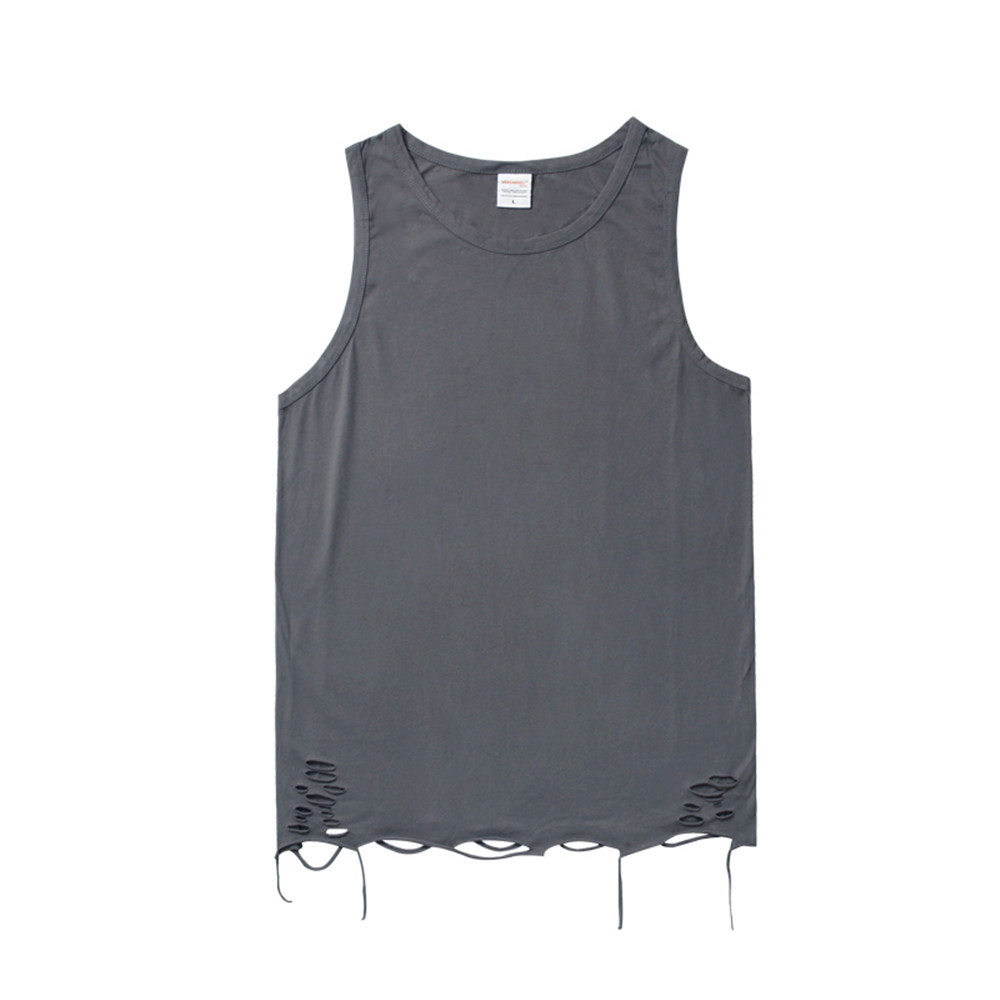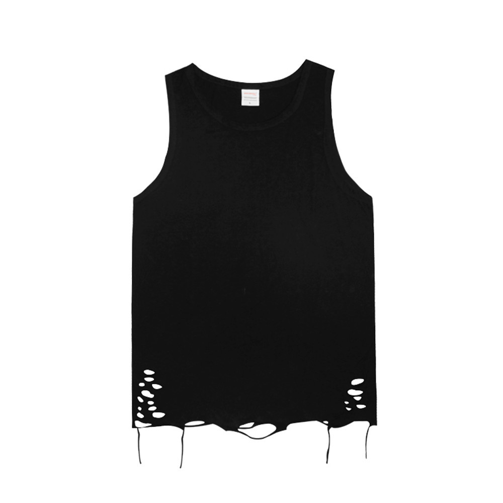 Simple Style Solid Color Hole Casual Sleeveless Vest Men's Summer Street Loose Layered Bottoming T-shirt