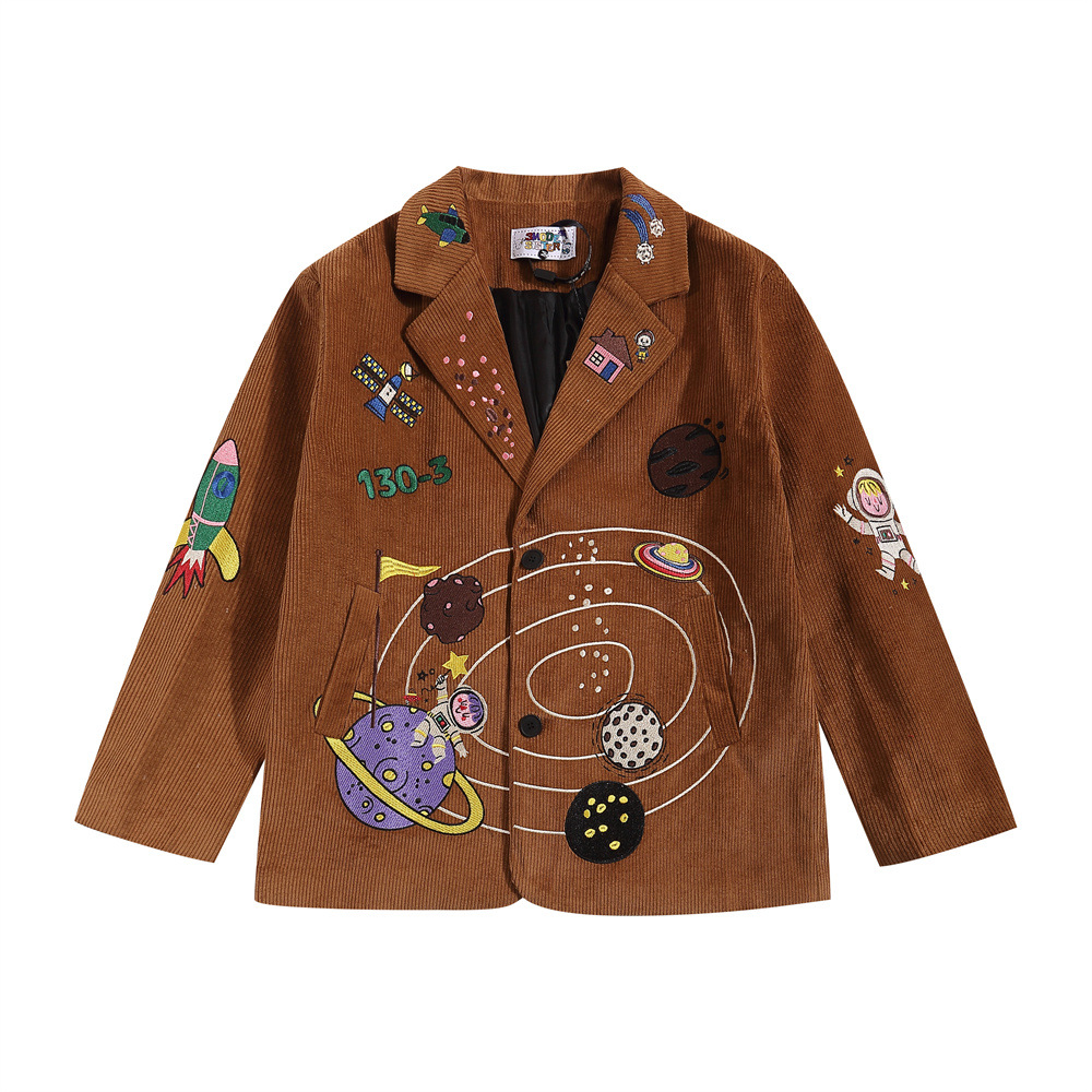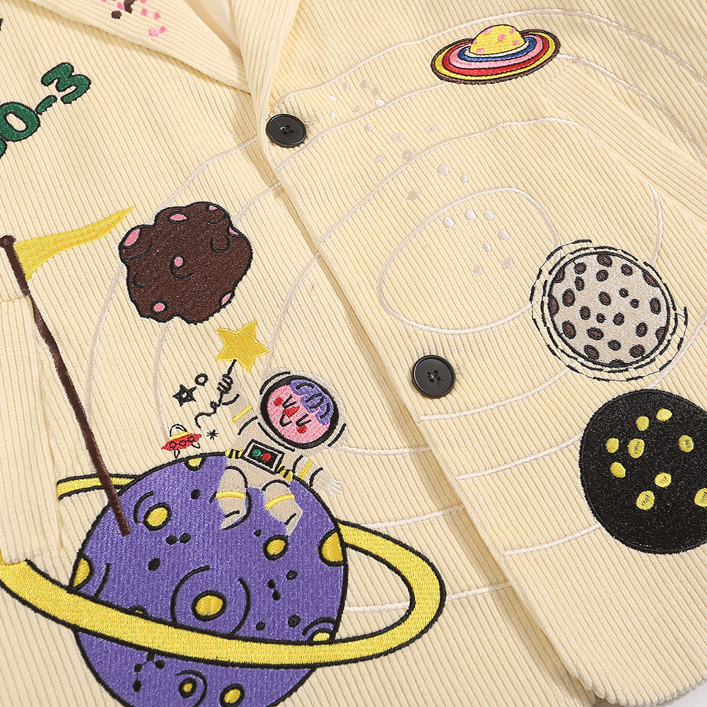 Fun Cartoon Embroidery Casual Suit Men'sy Brand High Street Design Niche Personality Corduroy Loose Jacket