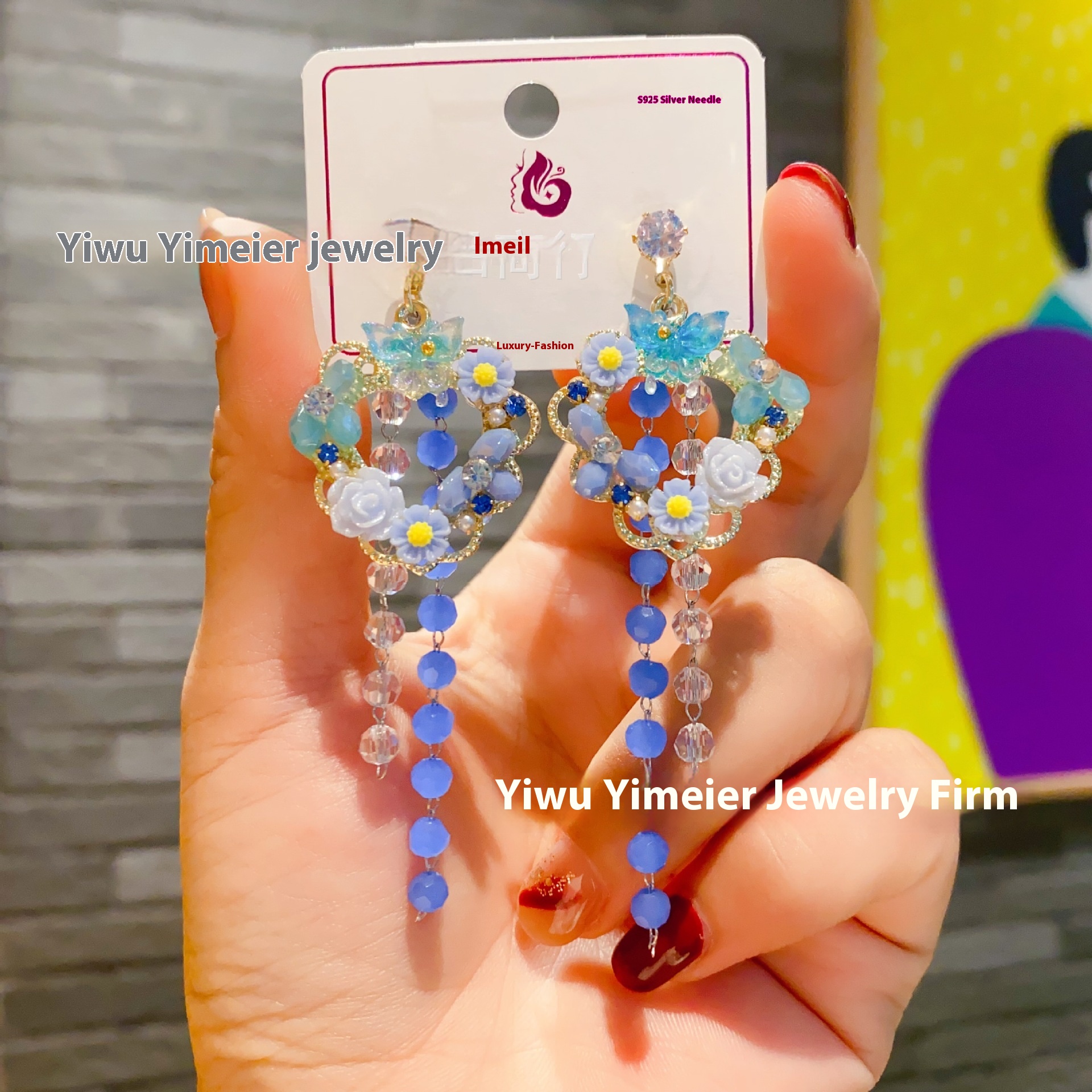 Autumn And Winter Love Tassel Earrings Korean Style Simple Fashion Personality Long Flower Heavy Earrings