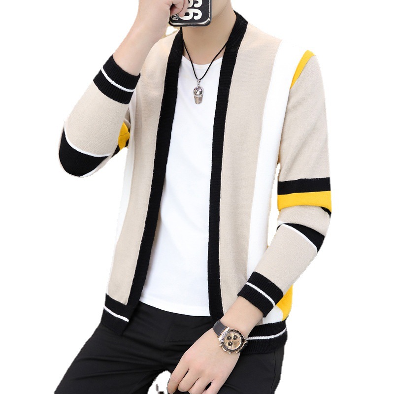 Cardigan Sweater Men's Autumn Jacket Striped Color Block Sweater Teenagers Fashion Handsome Casual Sweater