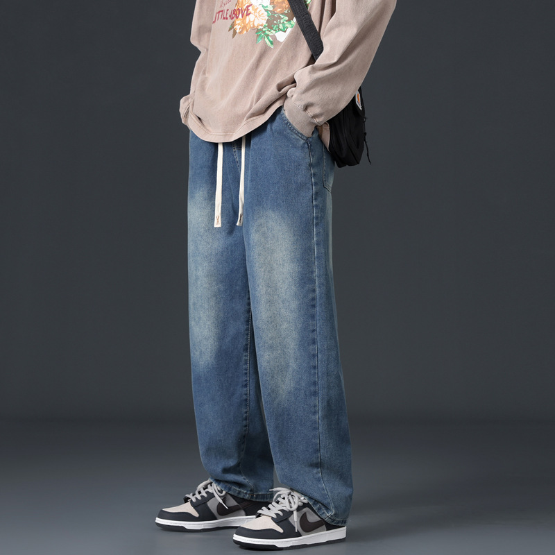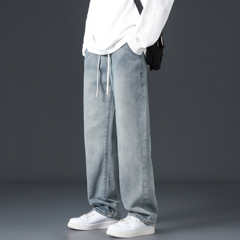 Spring Jeans,Men's Loose Straight Pants,Spring And Autumn Slightly Widey Long Pants,Floor-length Pants,Fashionable Casual Pants
