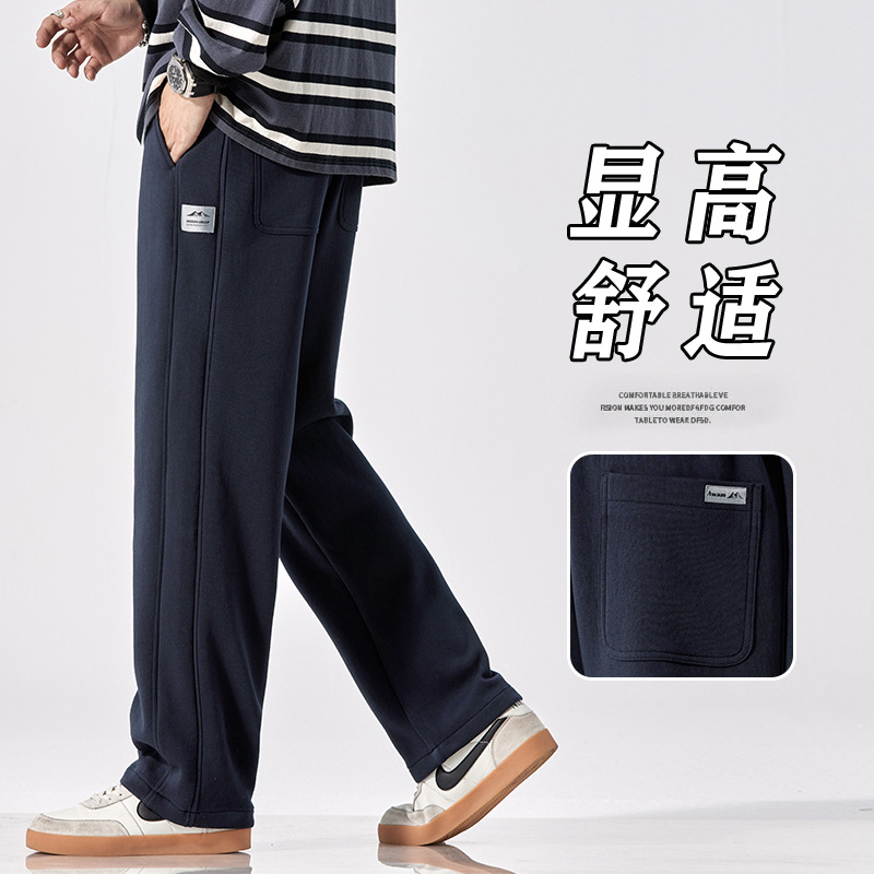 Casual Pants Men's Loose Straight Pants Winter Fleece Pants Teenagers Floor-length Trousers Fashionable Pants