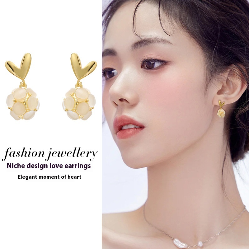 Mosquito Coil Ear Clip Cat's Eye Stone Earringsy Women's Light Luxury Niche Design Internet Celebrity Earrings Autumn And Winter
