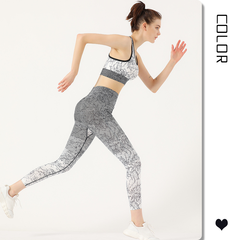 Sports Suit Printed Yoga Suit Women Nine-point Yoga Pants Sports Fitness Bra Two-piece Set