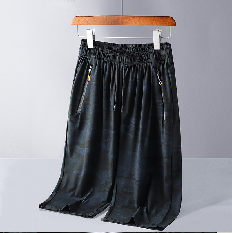 Minzuo Men's Ice Silk Shorts Men's Summer Thin Cropped Pants Breathable Loose Large Size Men's Casual Sports Pants