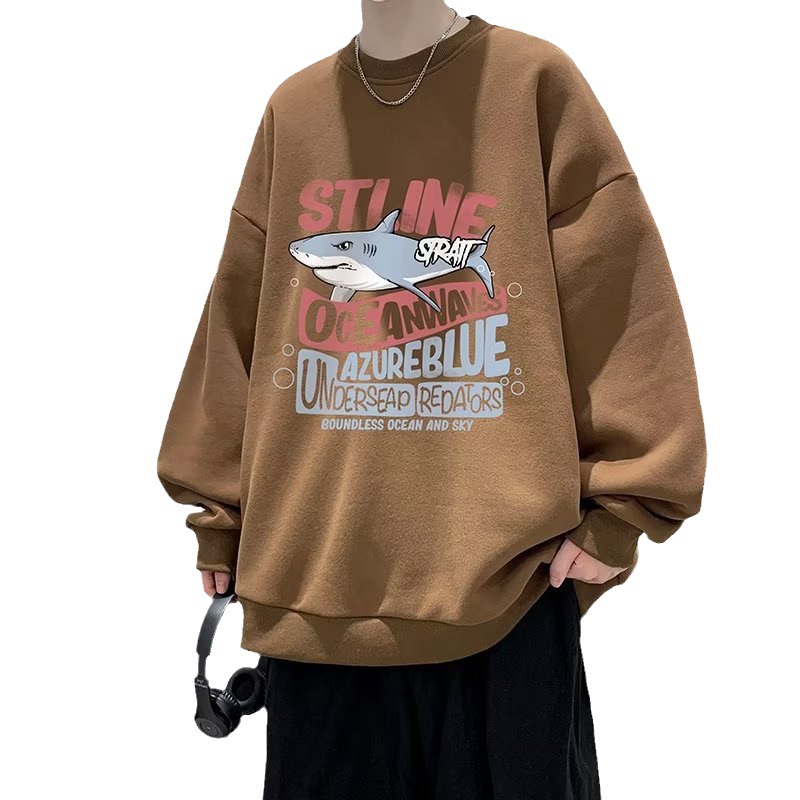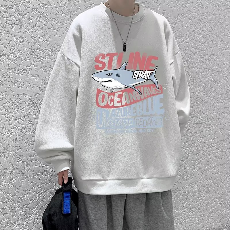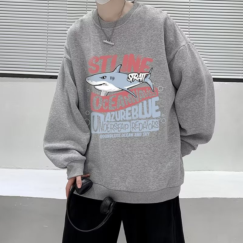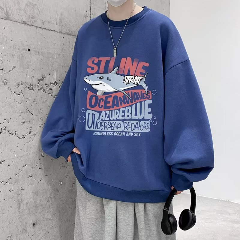 Hong Kong Style Printed Round Neck Sweatshirt For Men In Spring And Autumn,High-lookingy Brand Long-sleeved T-shirt,y And Versatile Loose Jacket