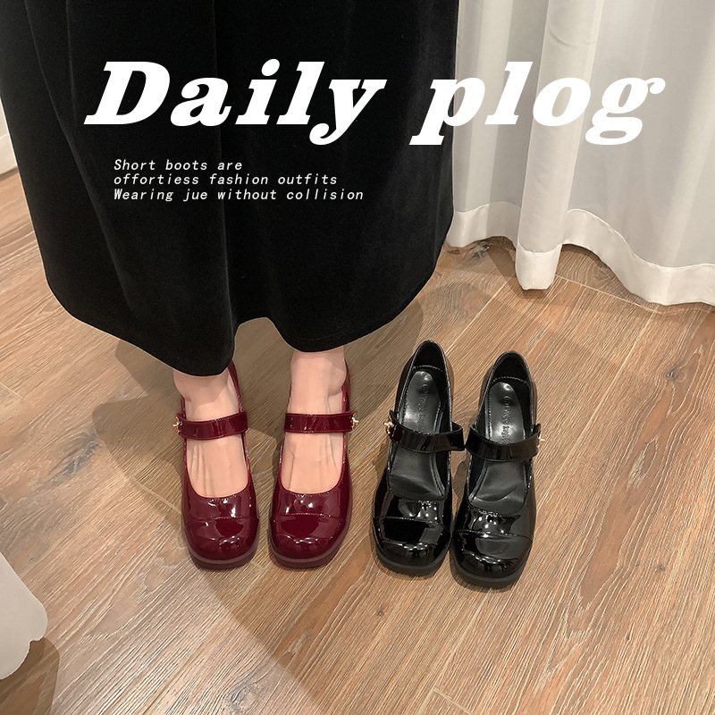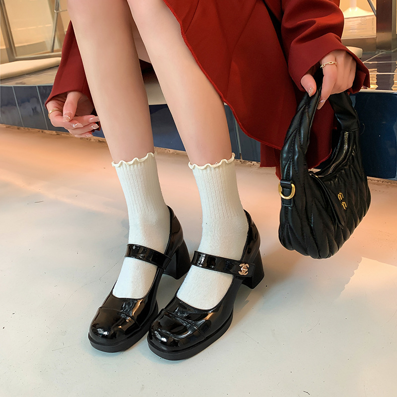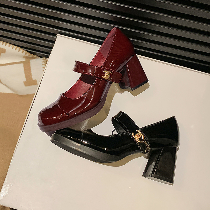 Prelude To Christmas~Spring Style Small Fragrance Buckle Strap Thick Heel Mary Jane Shoes Women's High Heels