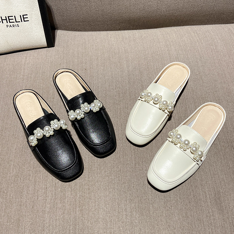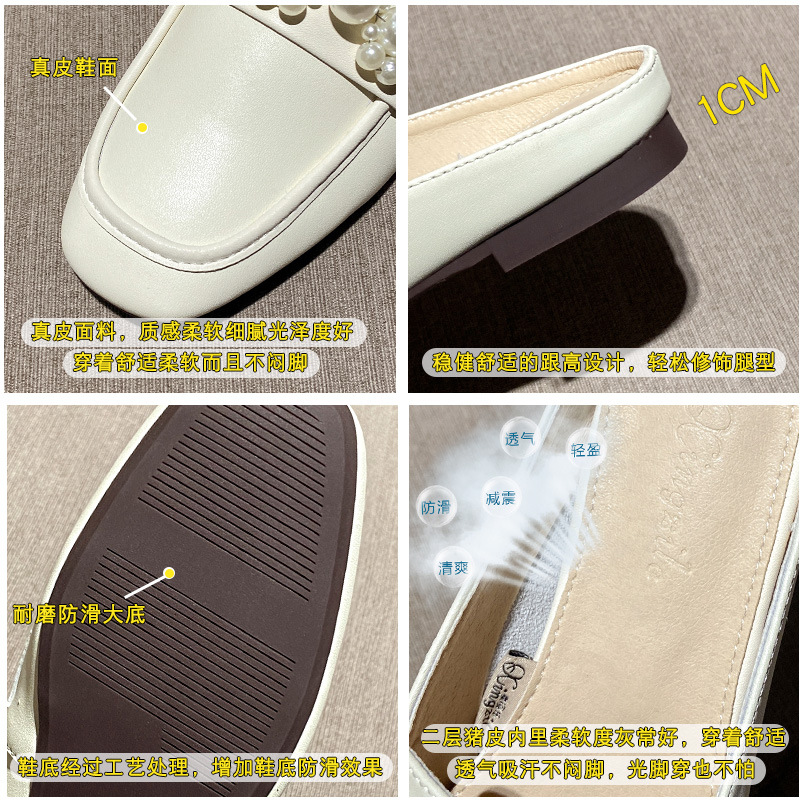 Genuine Leather Mules Women's Toe-Toe Half-Flop Sandals Spring Outerwear Lazy Sandals Comfortable Flat Shoes