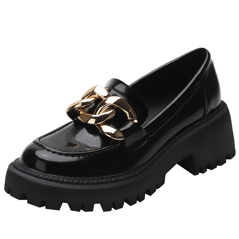 Genuine Leather Jk Small Leather Shoes Thick Sole British Style Spring Versatile Single Shoes For Women Black Slip-on Loafers