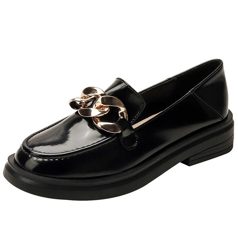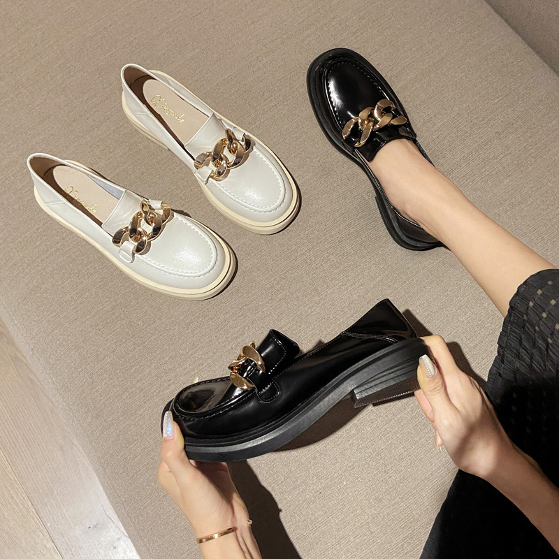 Jk Small Leather Shoes For Women Thick Sole British Style Spring All-match Shoes Black Round Toe Genuine Leather Loafers