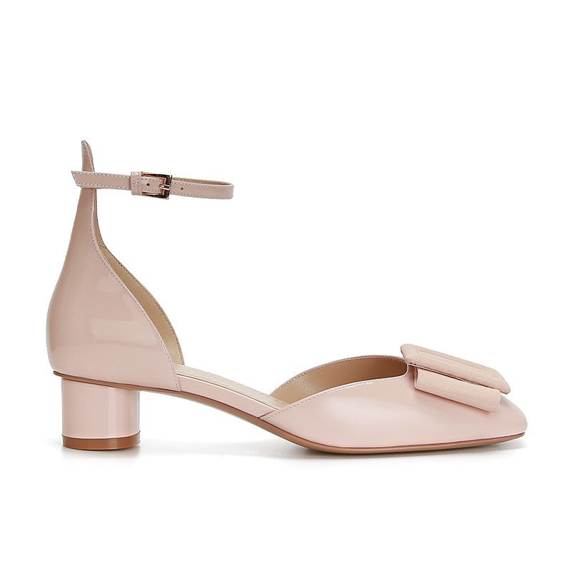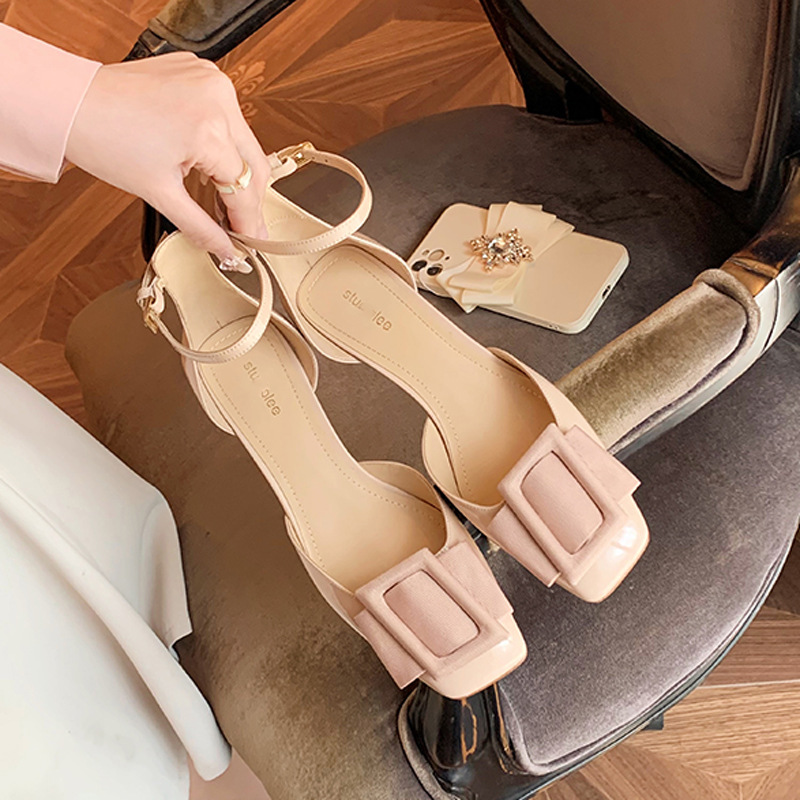 Genuine Leather Sandals For Women Sheepskin Summer Internet Celebrity Style Thick Heel Square Toe Square Buckle Ankle Buckle Strap Toe Toe Shoes