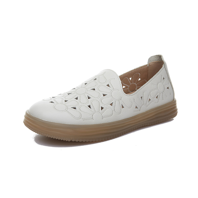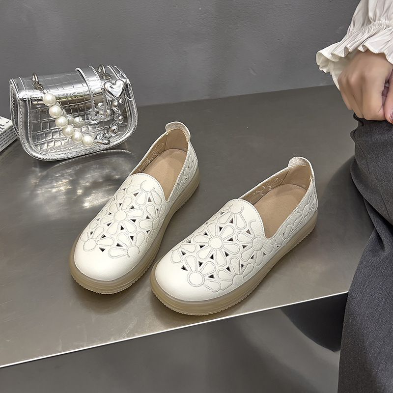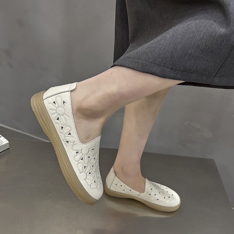 Spring And Summer Style Hollow Breathable Hole Shoes Casual Hole Punch Sandals Flat Bottom First Layer Cowhide White Shoes Female Nurse Shoes