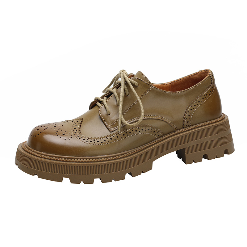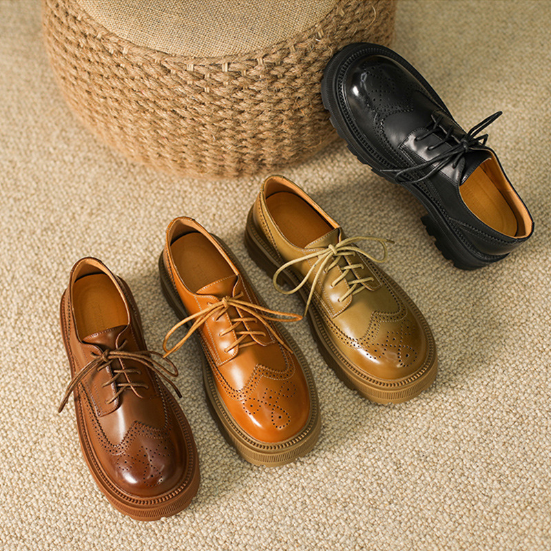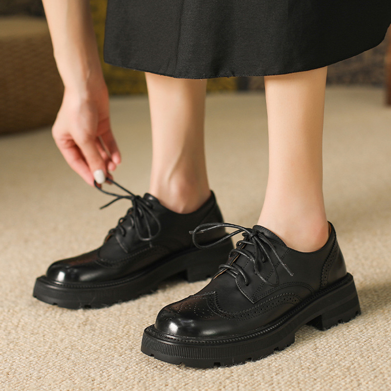 Women's Shoes Cowhide Round Toe Thick Sole Lace-up Retro British Style Platform Shoes JKShoes Women's Single Shoes
