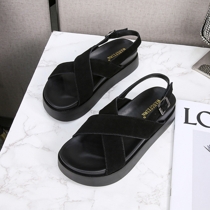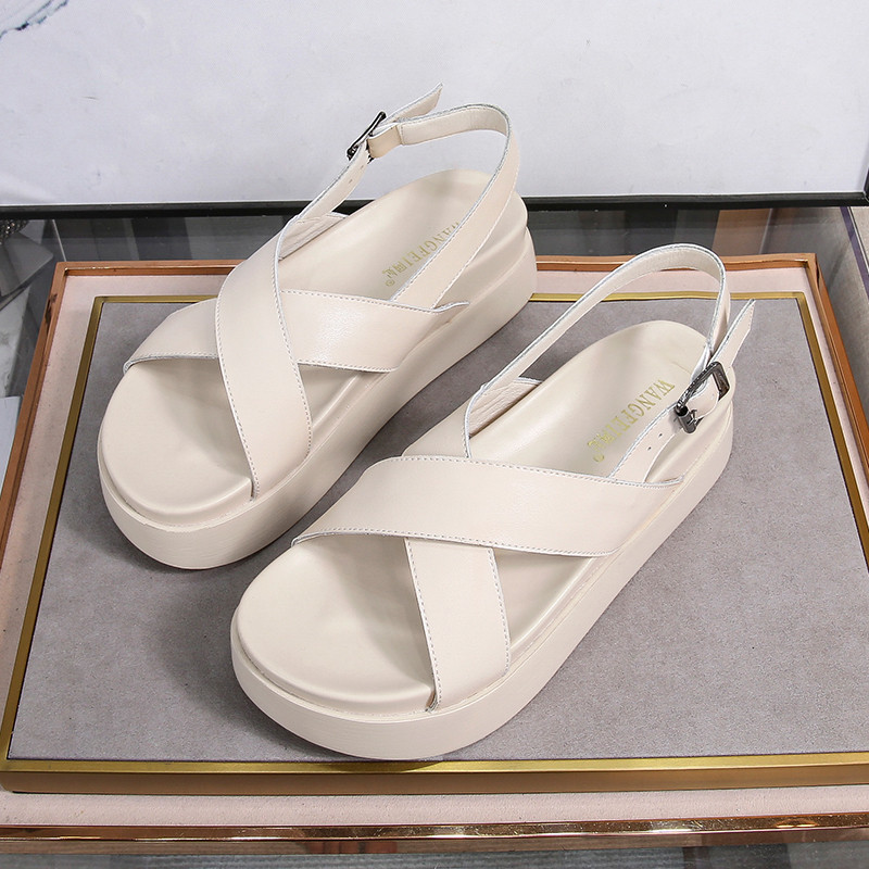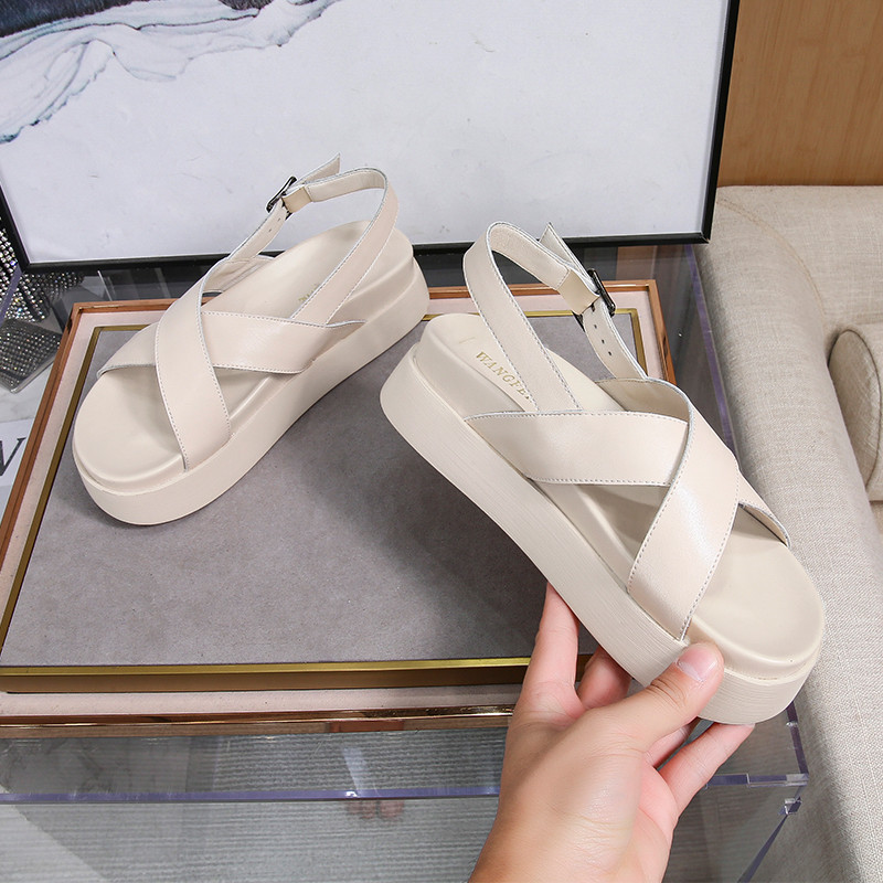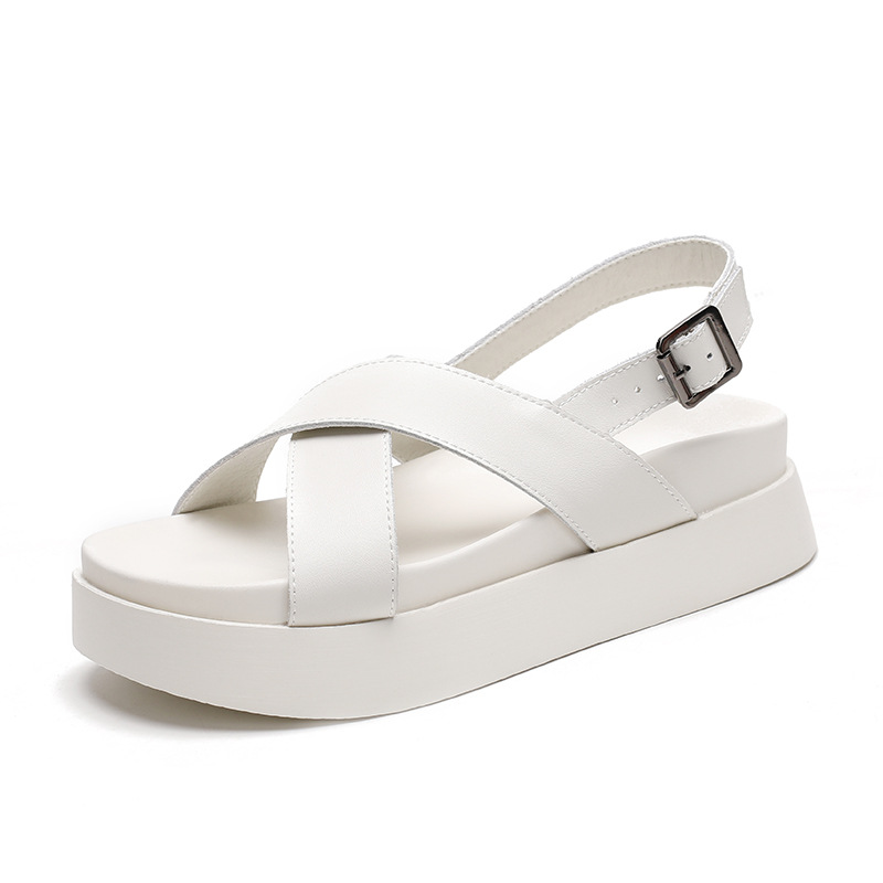 Fashionable And Versatile Cross-strap Thick-soled Sandals For Women Summer Women's Shoes For Outer Wear Open-toe Leather Beach Shoes For Women