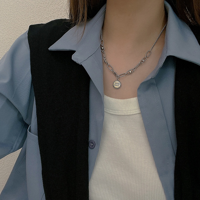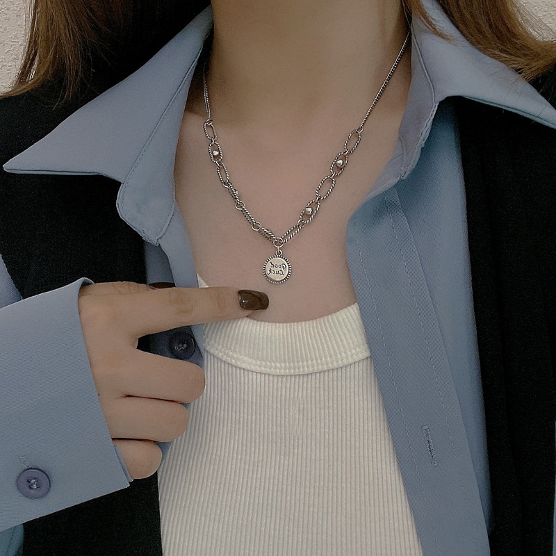 Cold Style Retro English Round Necklace Female Autumn And Winter Style Light Luxury Simple All-match High-end Sweater Chain