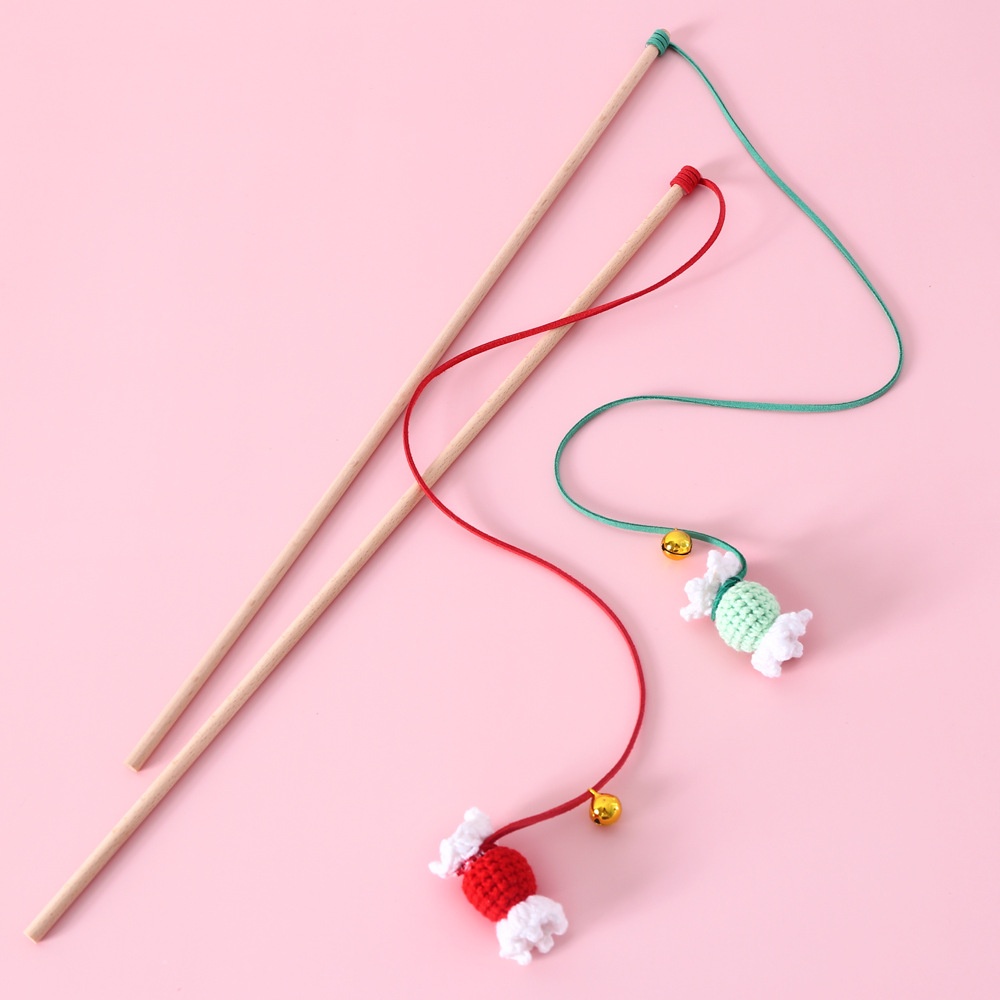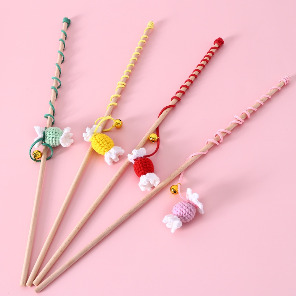 Cat Yarn Knitted Colorful Candy Wooden Stick To Amuse The Cat Pet Toy Fishing Cat Pole Sound Interactive Training Bell