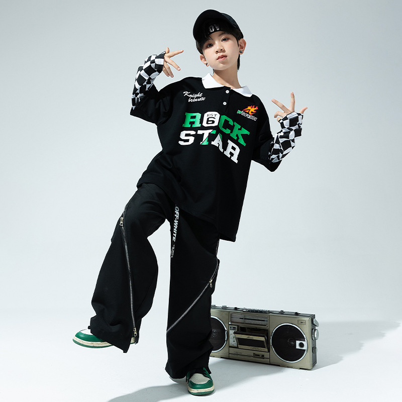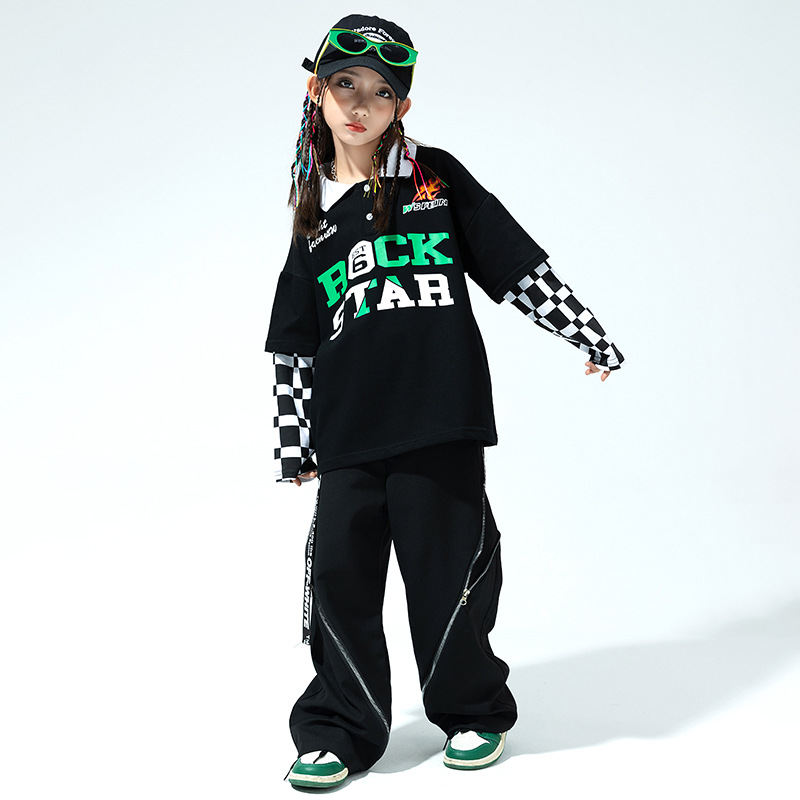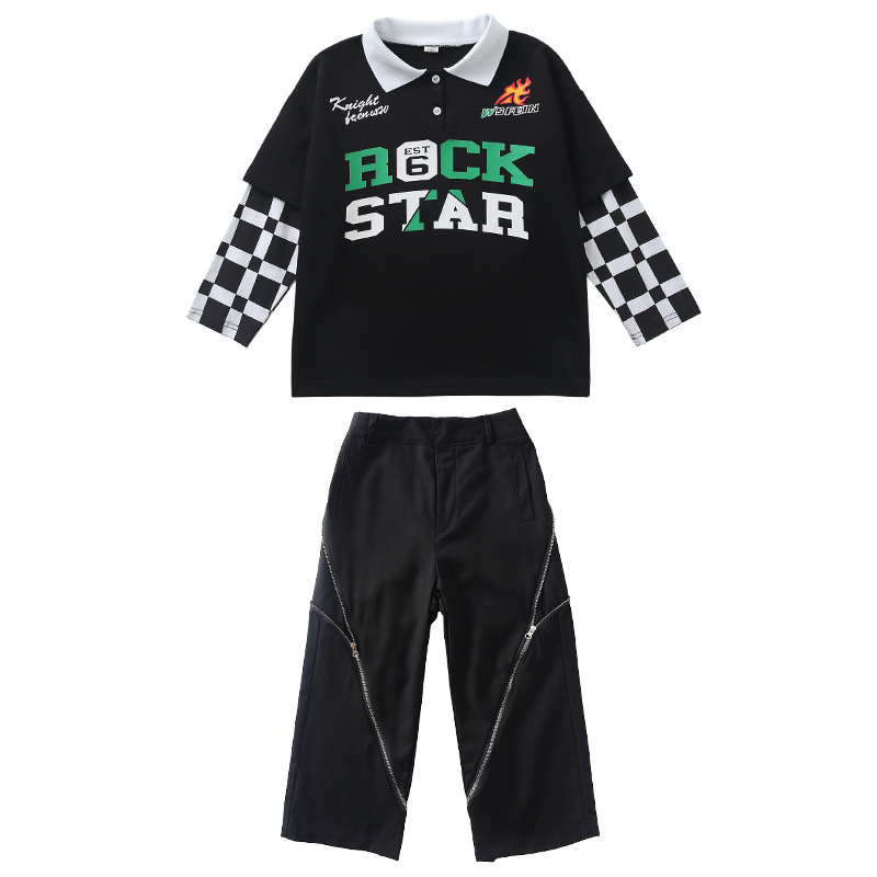 Children's Street Dance Clothes Boys Handsome Hiphop Performance Clothes Girls Personality Hip-hop Jazz Dance Fake Two-piece Suit