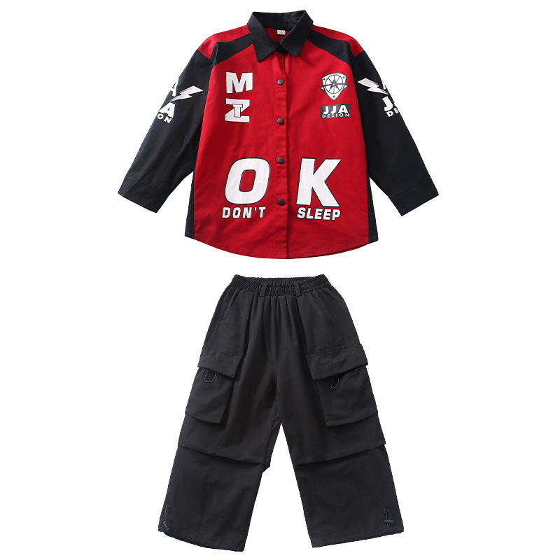 Street Dance Children'sy Clothing Boys'Hip-hop Overalls Suit Girls'Jazz Jazz Dance Long-sleeved Loose Performance Clothingy
