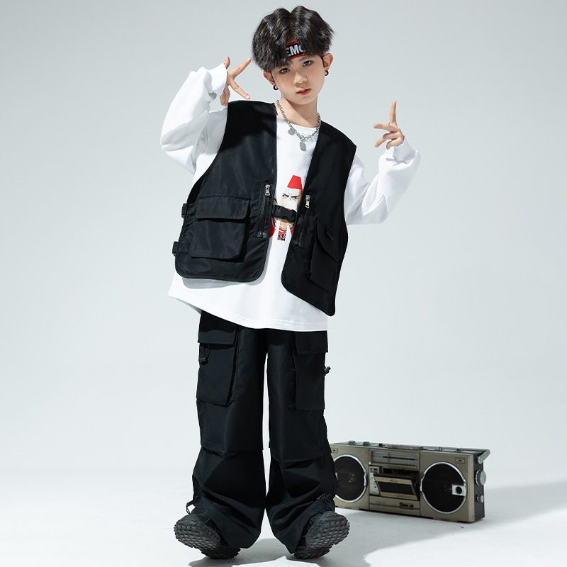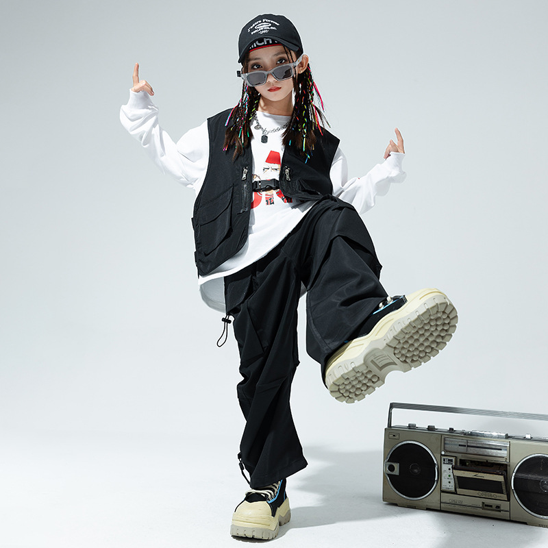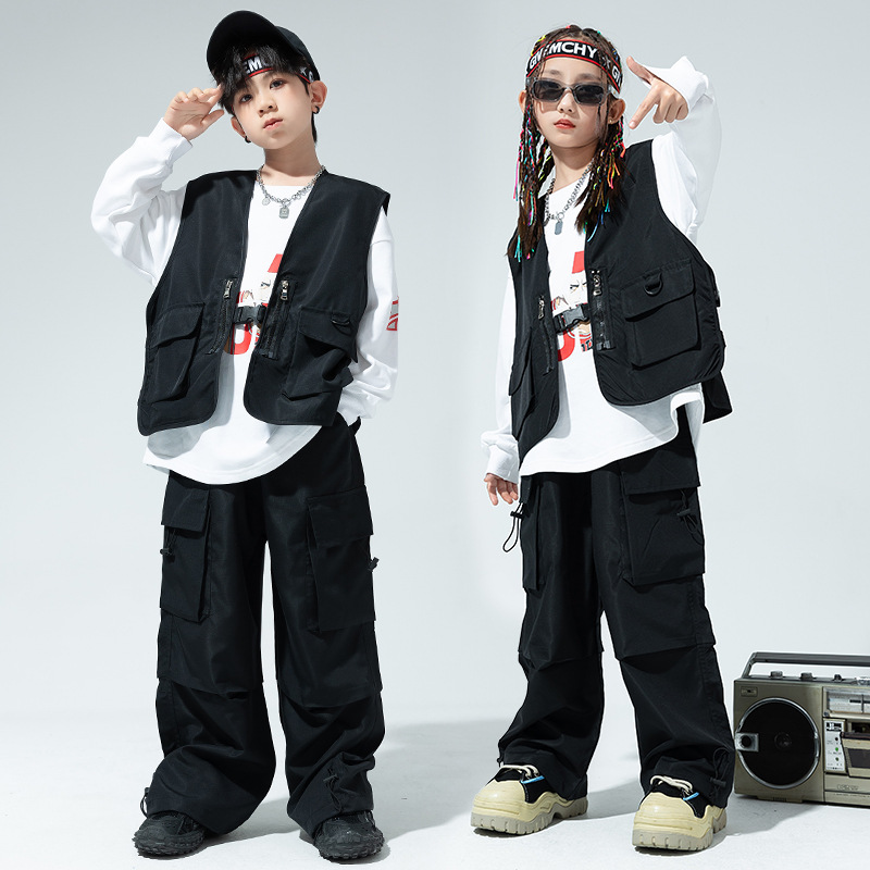 Children's Hip-hopy Clothing Boys'Hip-hop Hiphop Overalls Suit Girls'Street Jazz Dance Vest Three-piece Set