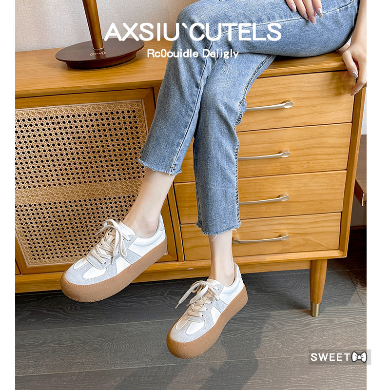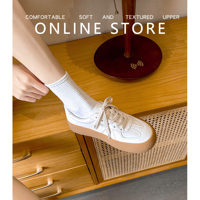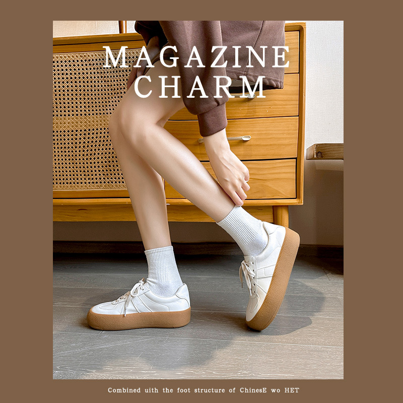 Thick-soled Sports White Shoes For Women Spring And Summer Genuine Leather Dexun Shoes Retro Casual Versatile Korean Version Of The Shoes