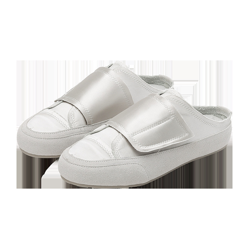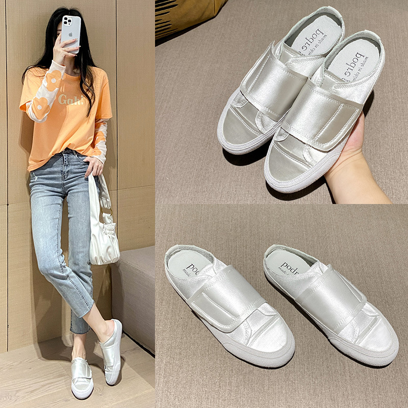Half-slip On Heel Slip-on Loafers Velcro Flat-soled Satin Thin Canvas Shoes Casual Heel-free Sneakers For Women